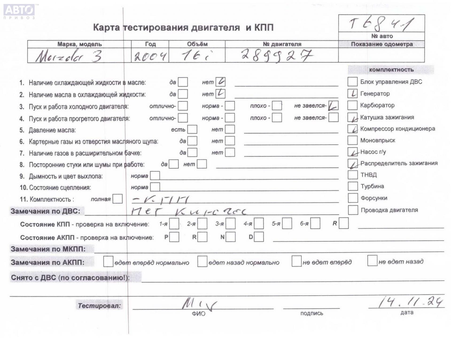 | Автомобиль / VIN: | T6841 JMZBK14Z251214703 |