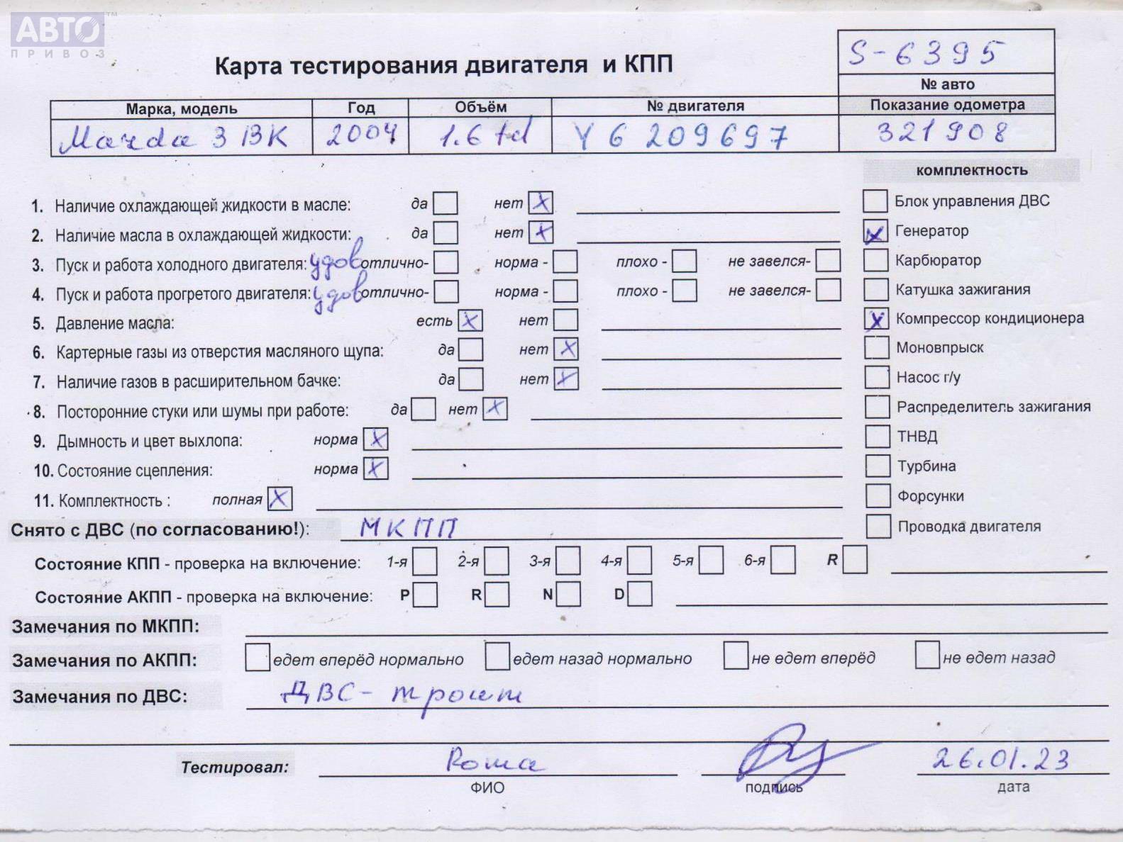 | Марка / Модель / Год: | Mazda 3 (2003-2008) BK 2004 |