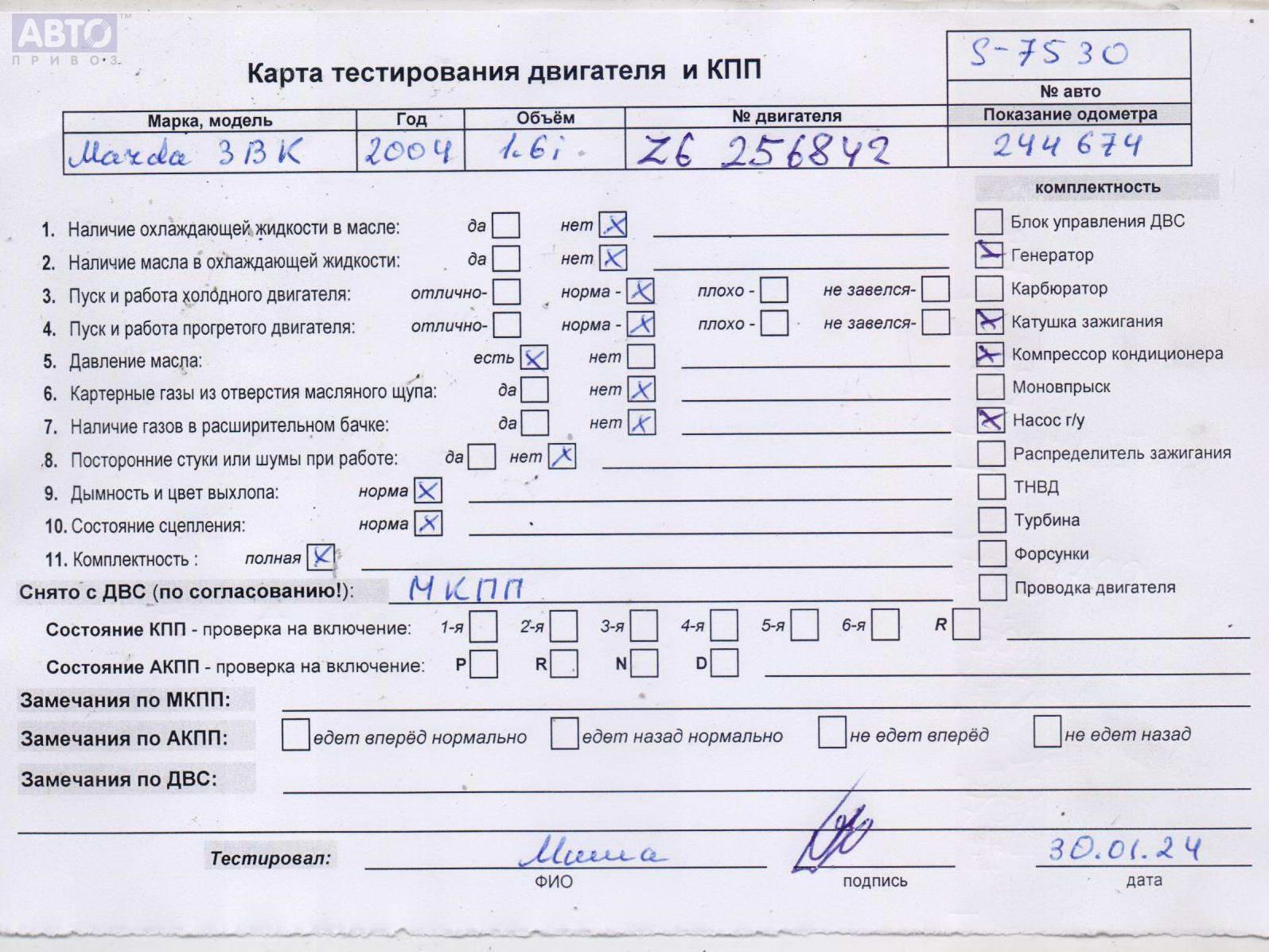 | Марка / Модель / Год: | Mazda 3 (2003-2008) BK 2004 |
