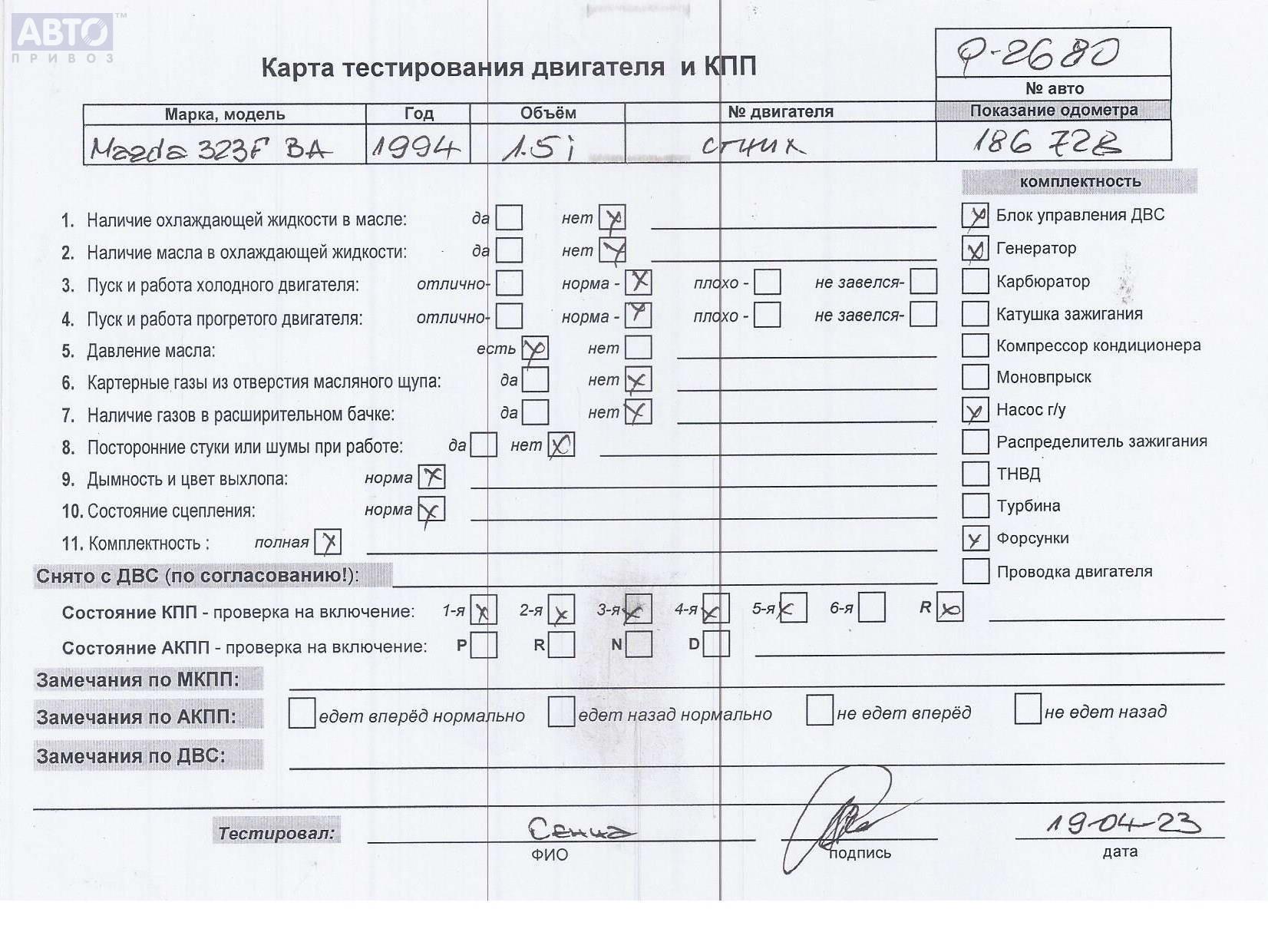 | Марка / Модель / Год: | Mazda 323 (1994-1998) BA 1994 |