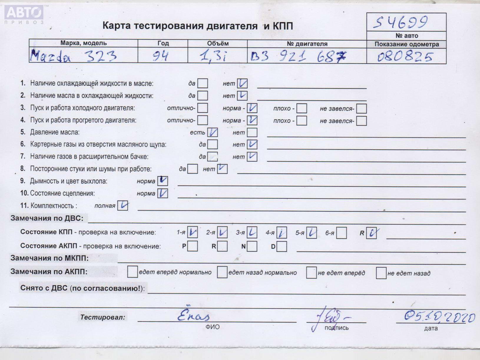 | Марка / Модель / Год: | Mazda 323 (1989-1995) BG 1994 |