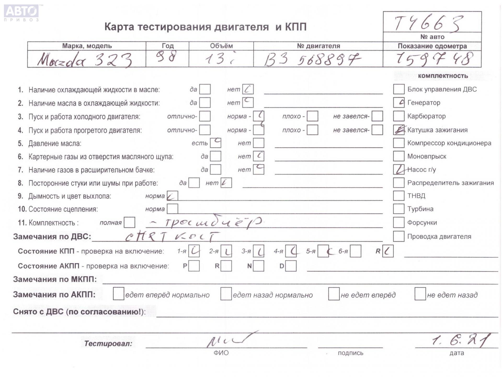 | Автомобиль / VIN: | T4663 JMZBA153200646443 |