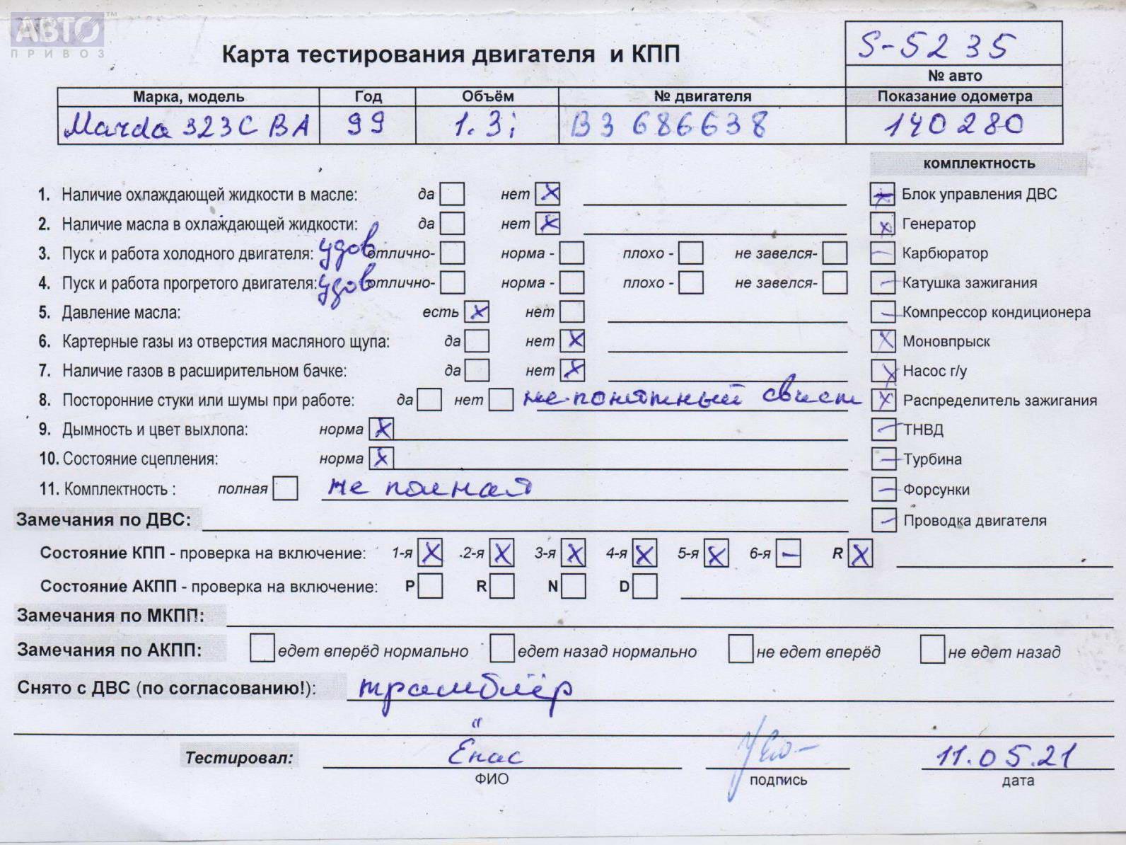 | Марка / Модель / Год: | Mazda 323P (1994-1999) BA 1999 |