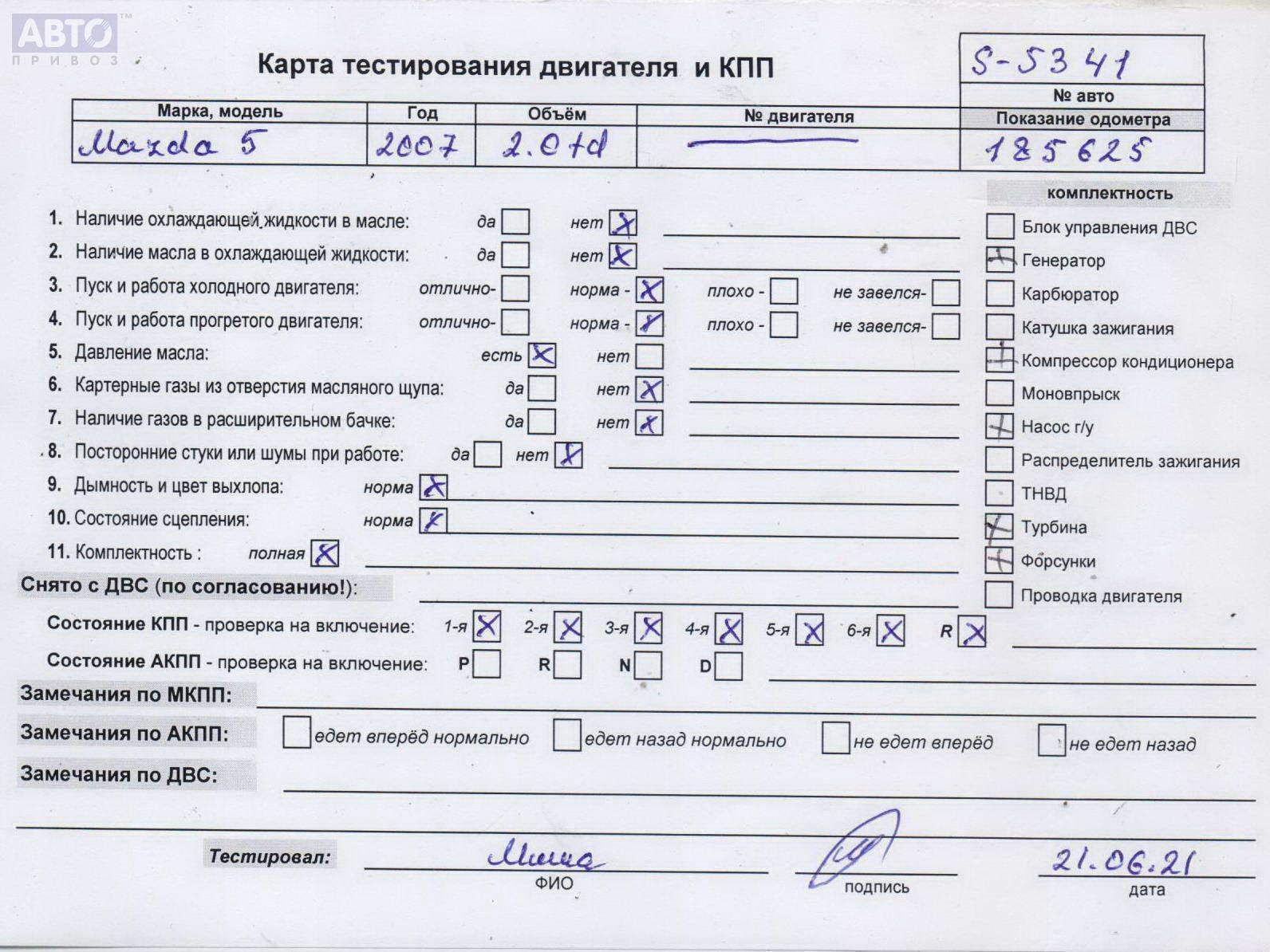 | Марка / Модель / Год: | Mazda 5 2007 |