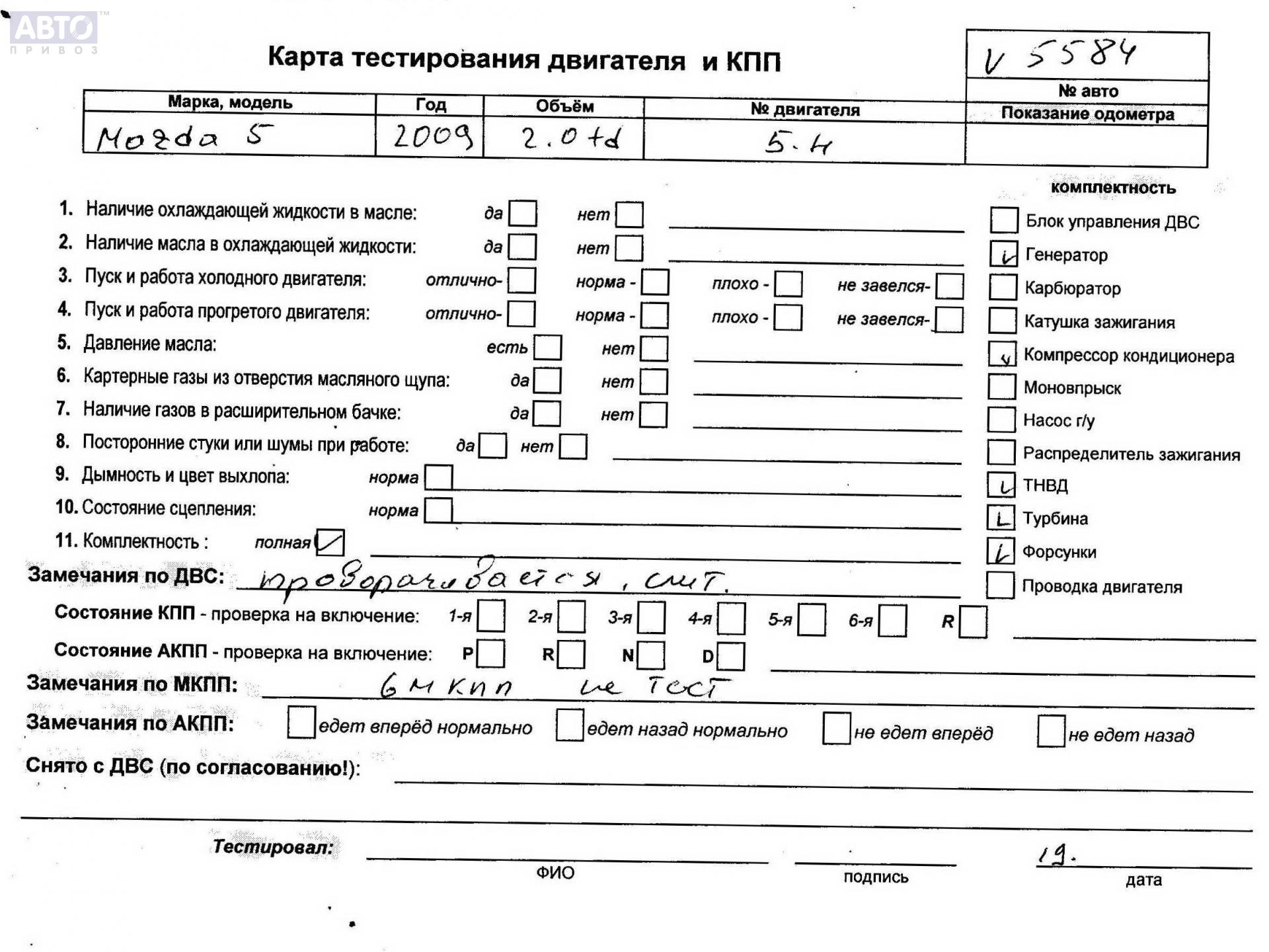 | Марка / Модель / Год: | Mazda 5 2009 |