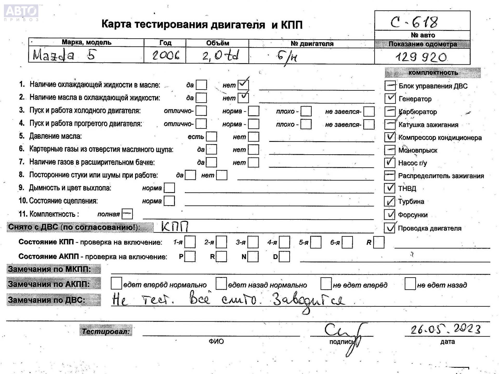 | Марка / Модель / Год: | Mazda 5 2006 |