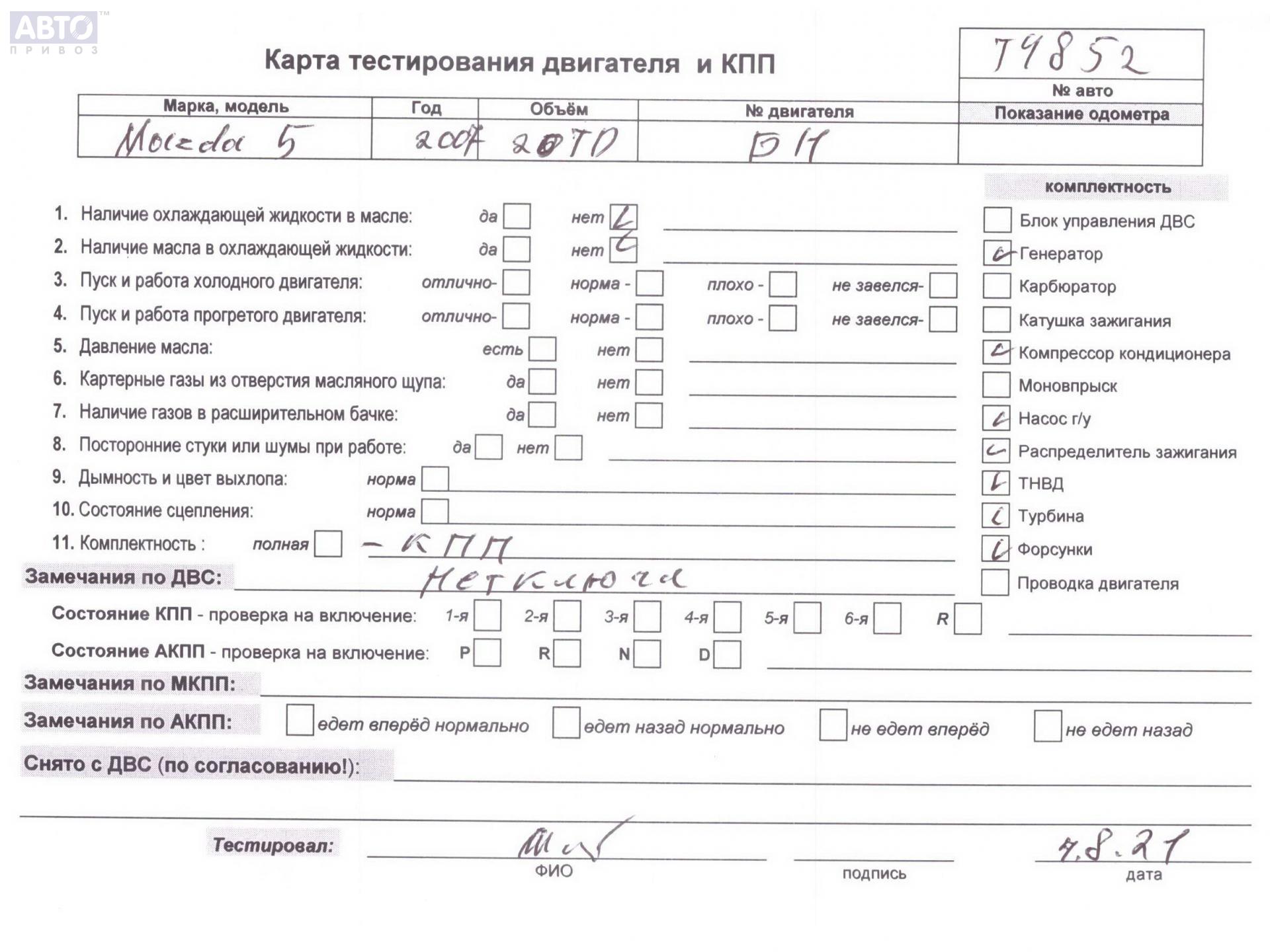 | Марка / Модель / Год: | Mazda 5 2007 |