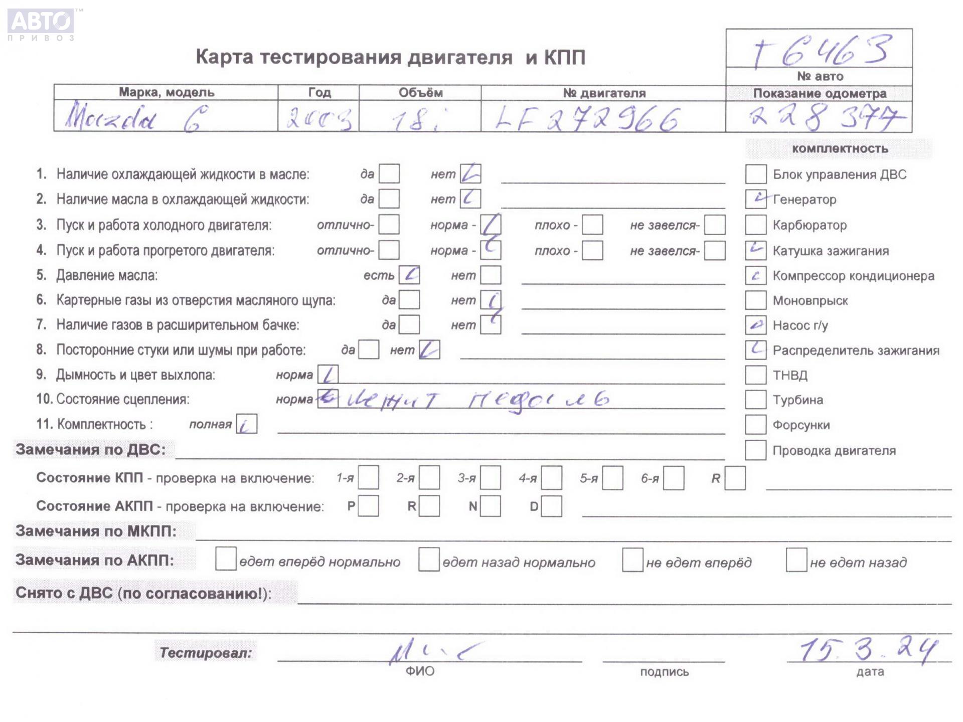 | Марка / Модель / Год: | Mazda 6 (2002-2007) GG/GY 2003 |