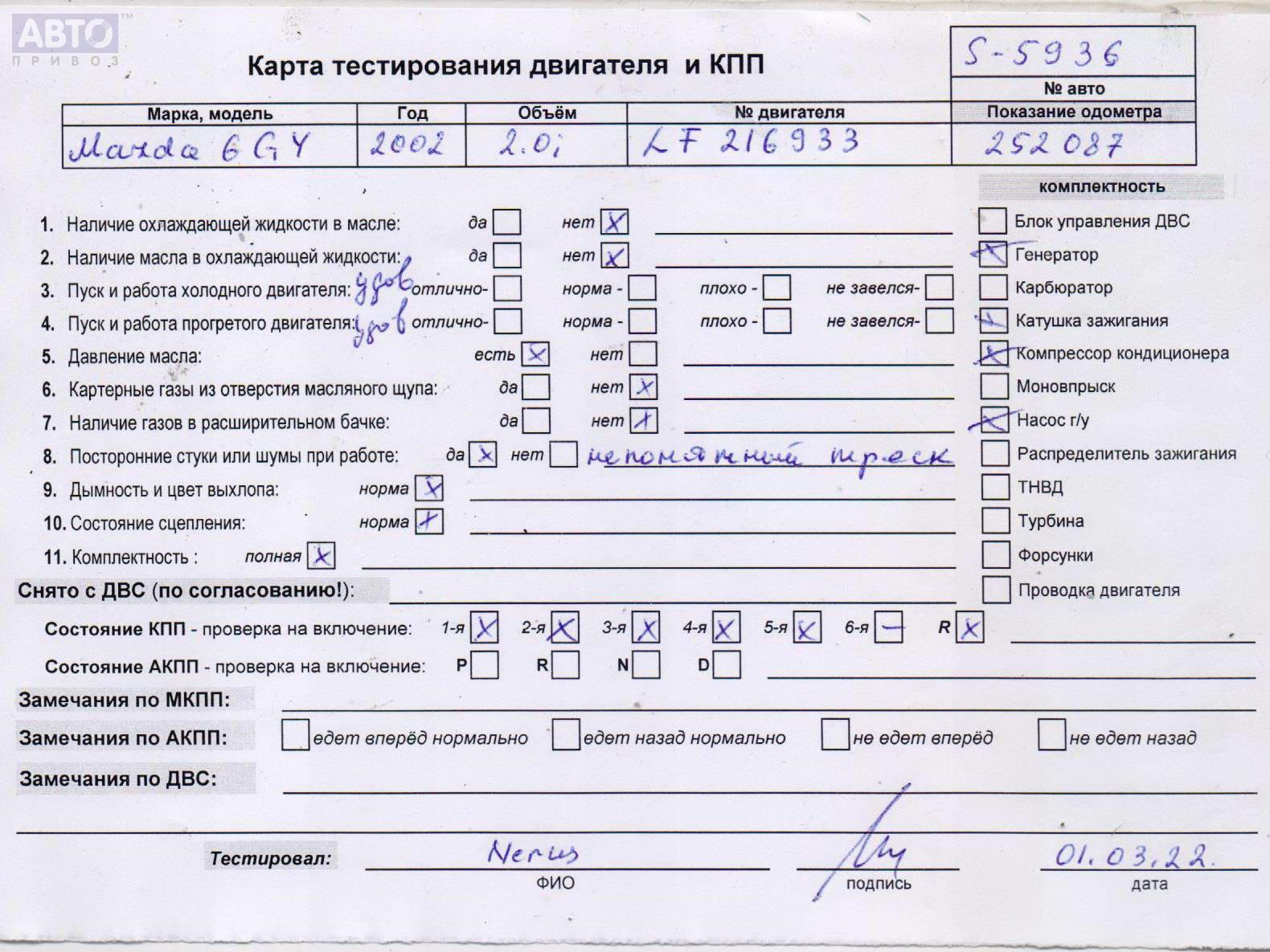 | Марка / Модель / Год: | Mazda 6 (2002-2007) GG/GY 2002 |