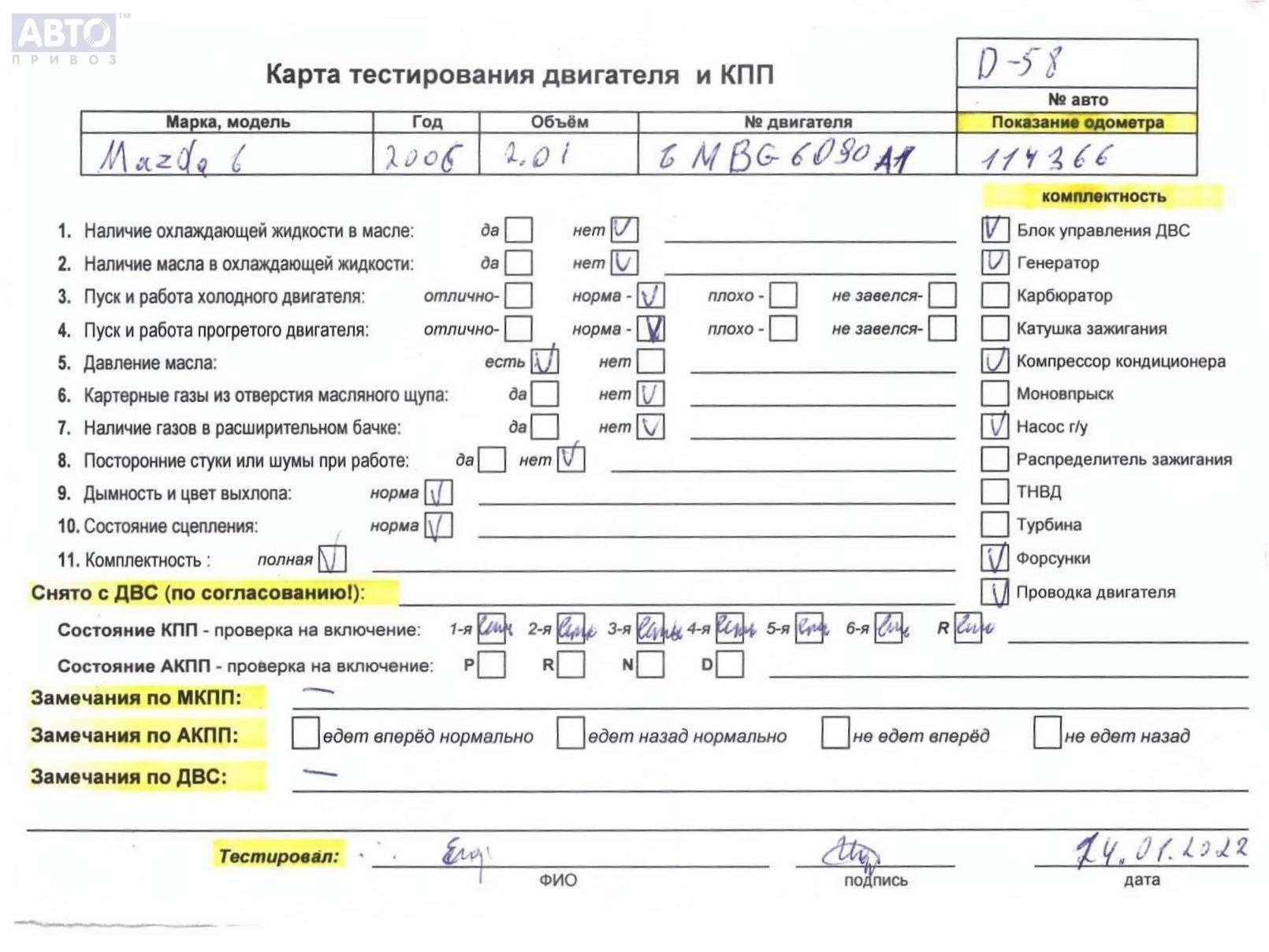 | Марка / Модель / Год: | Mazda 6 (2002-2007) GG/GY 2005 |