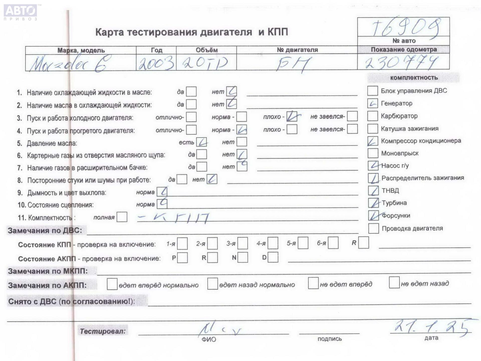 | Марка / Модель / Год: | Mazda 6 (2002-2007) GG/GY 2003 |