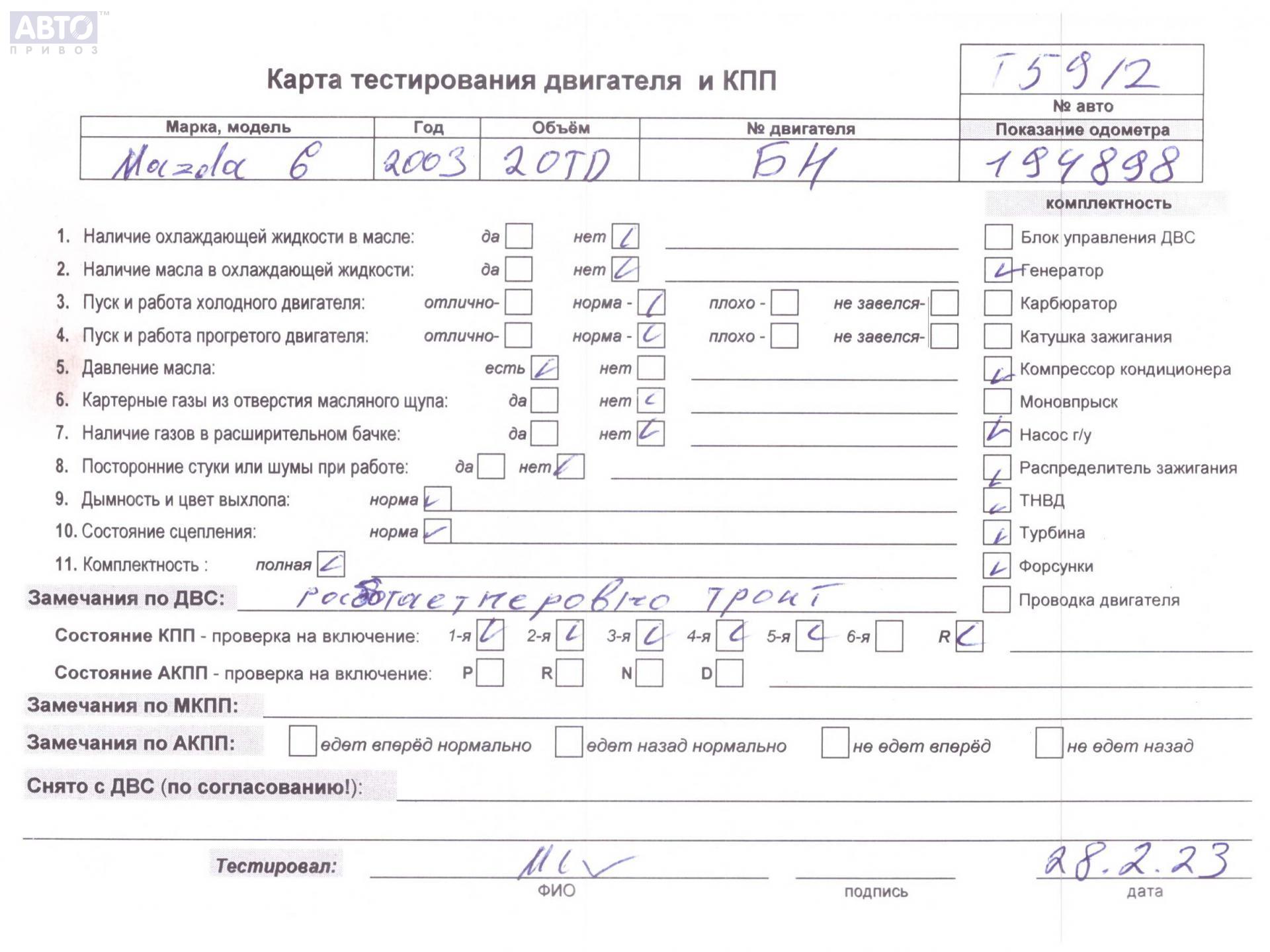 | Марка / Модель / Год: | Mazda 6 (2002-2007) GG/GY 2003 |