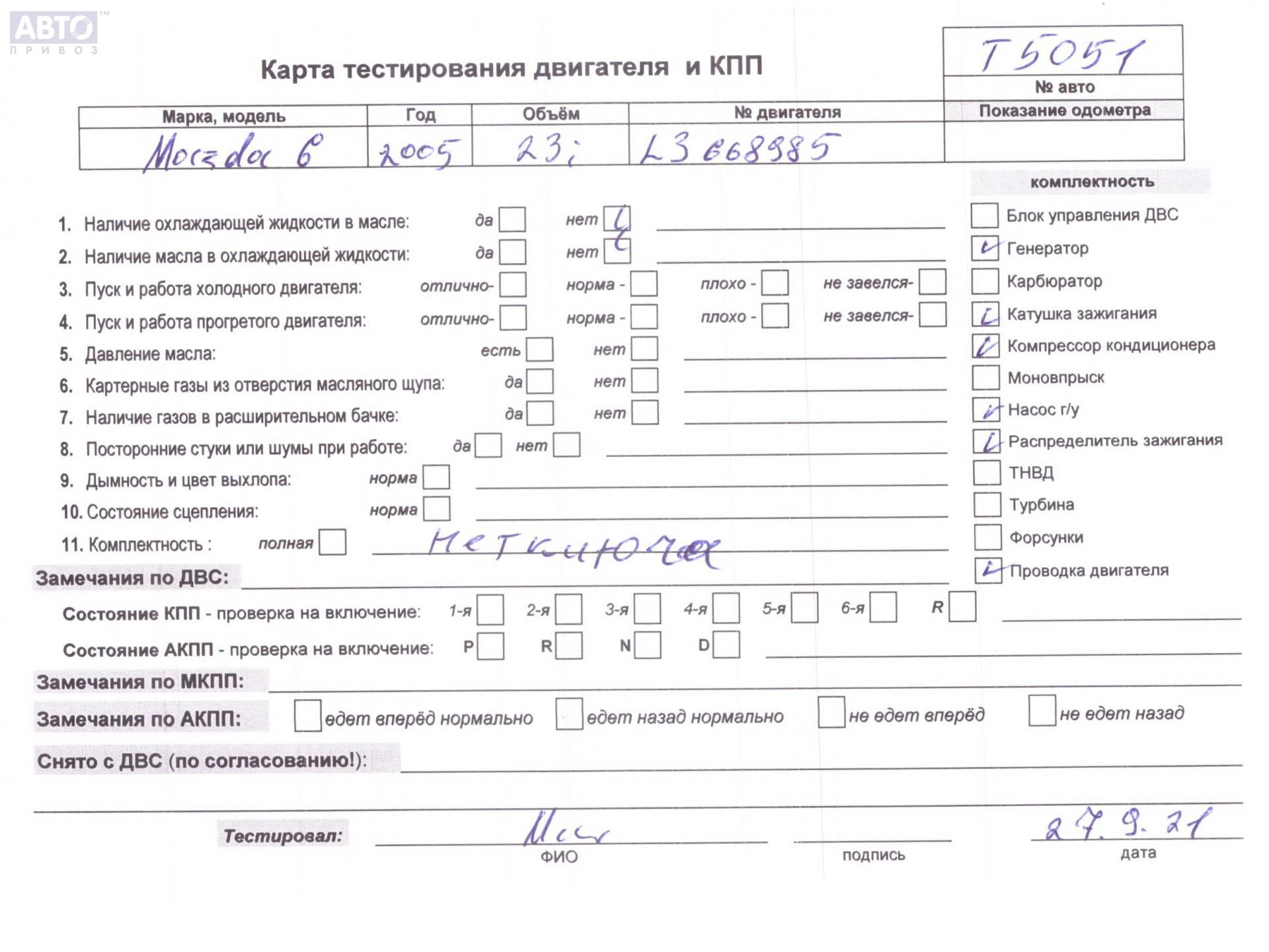 | Марка / Модель / Год: | Mazda 6 (2002-2007) GG/GY 2005 |