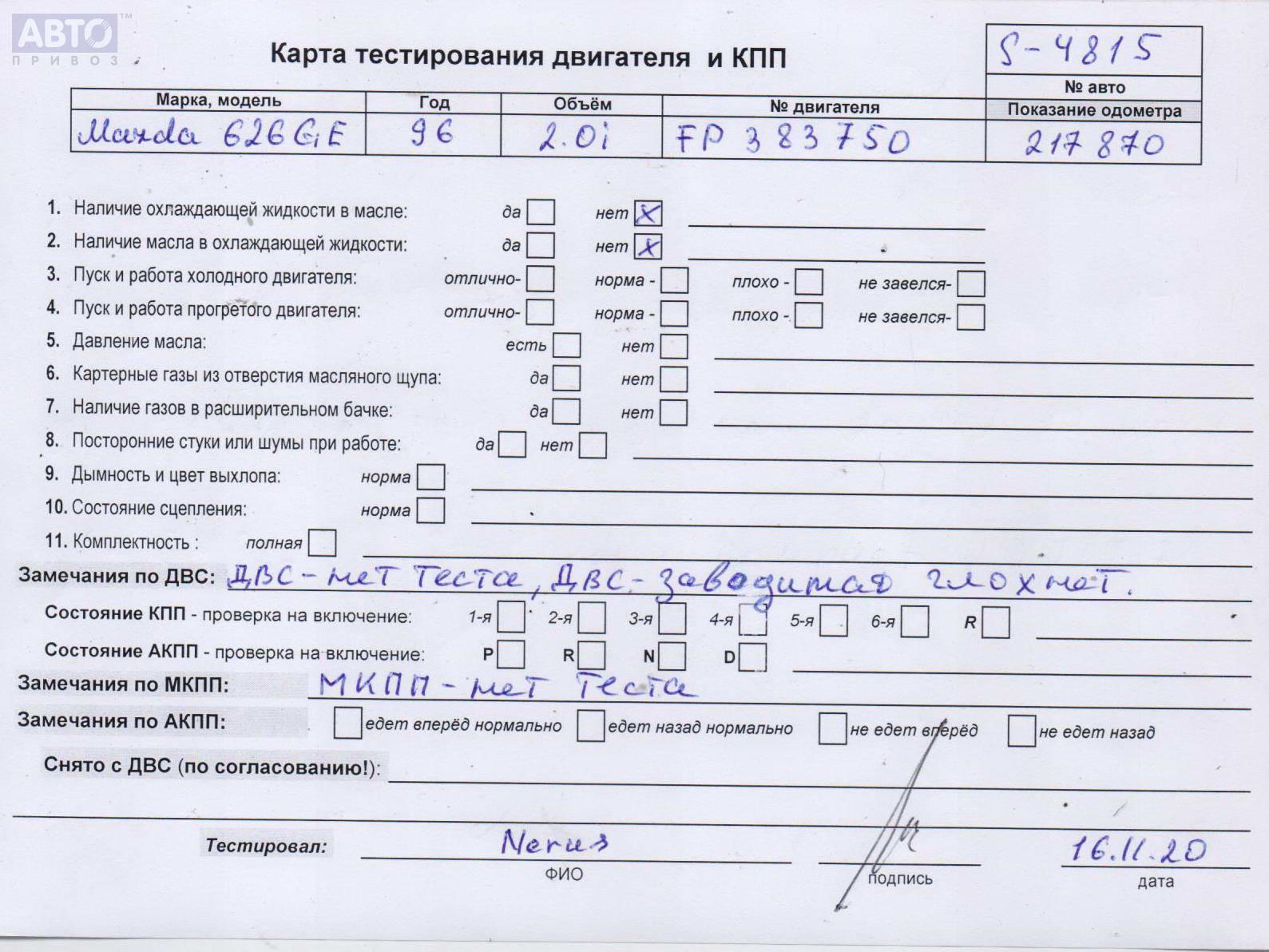 | Марка / Модель / Год: | Mazda 626 (1992-1997) GE 1996 |