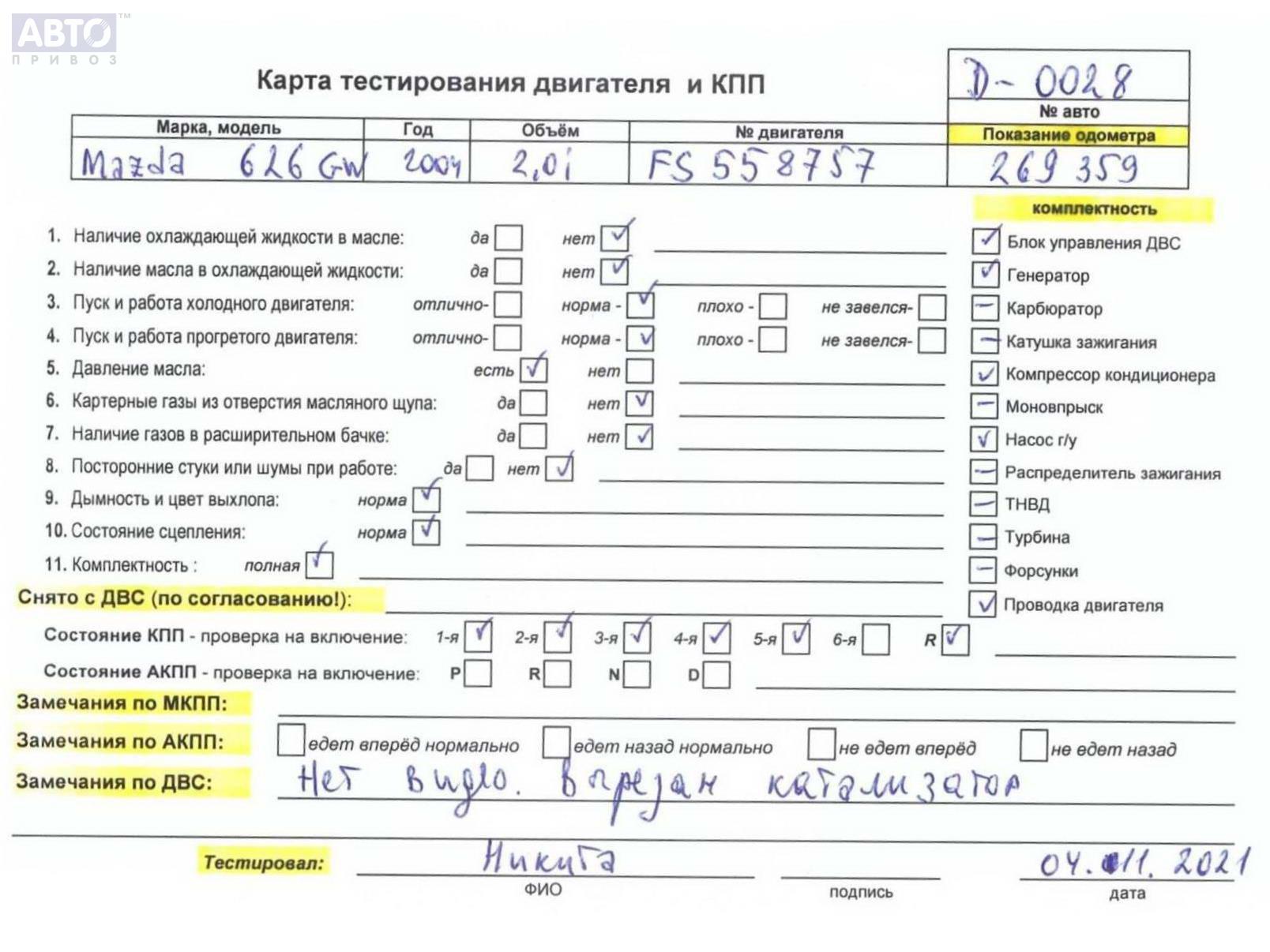 | Марка / Модель / Год: | Mazda 626 (1997-2002) GF/GW 1999 |