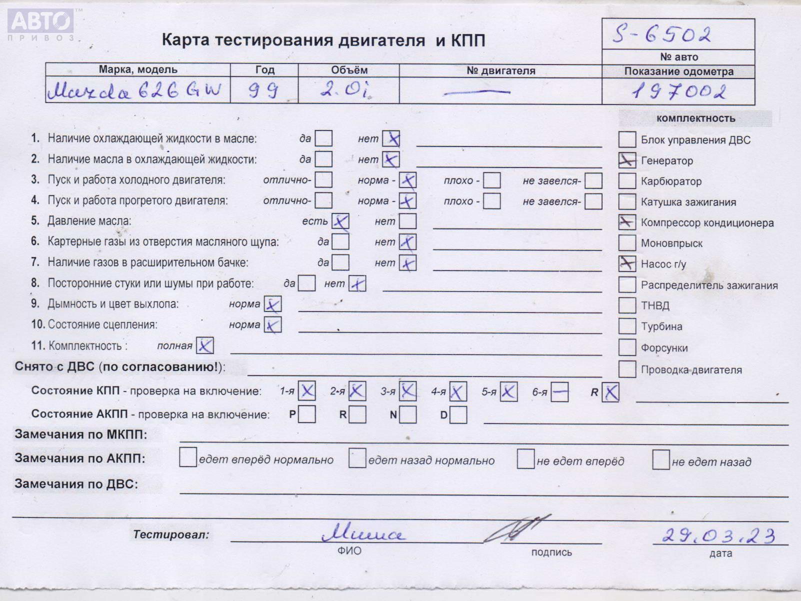 | Марка / Модель / Год: | Mazda 626 (1997-2002) GF/GW 1999 |