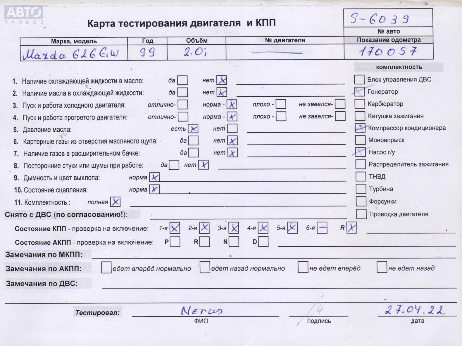 | Марка / Модель / Год: | Mazda 626 (1997-2002) GF/GW 1999 |