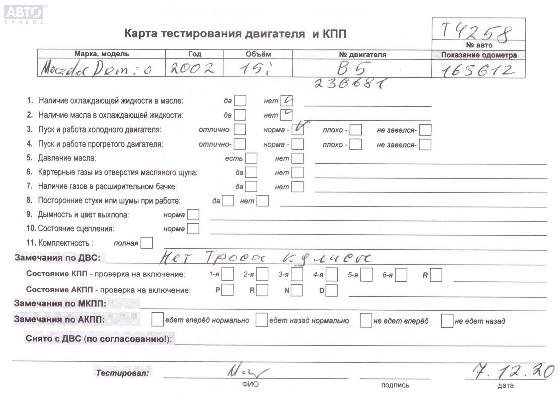 | Автомобиль / VIN: | T4258 JMZDW195500318976 |