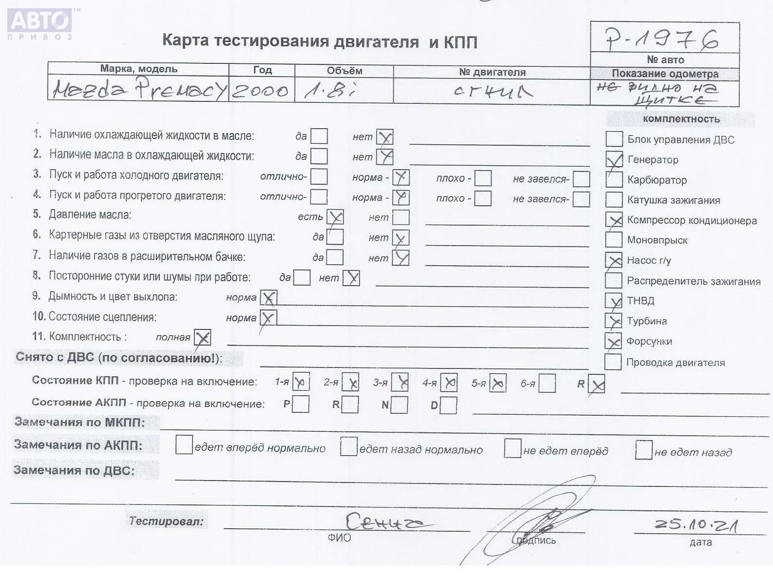 | Марка / Модель / Год: | Mazda Premacy 1999 |