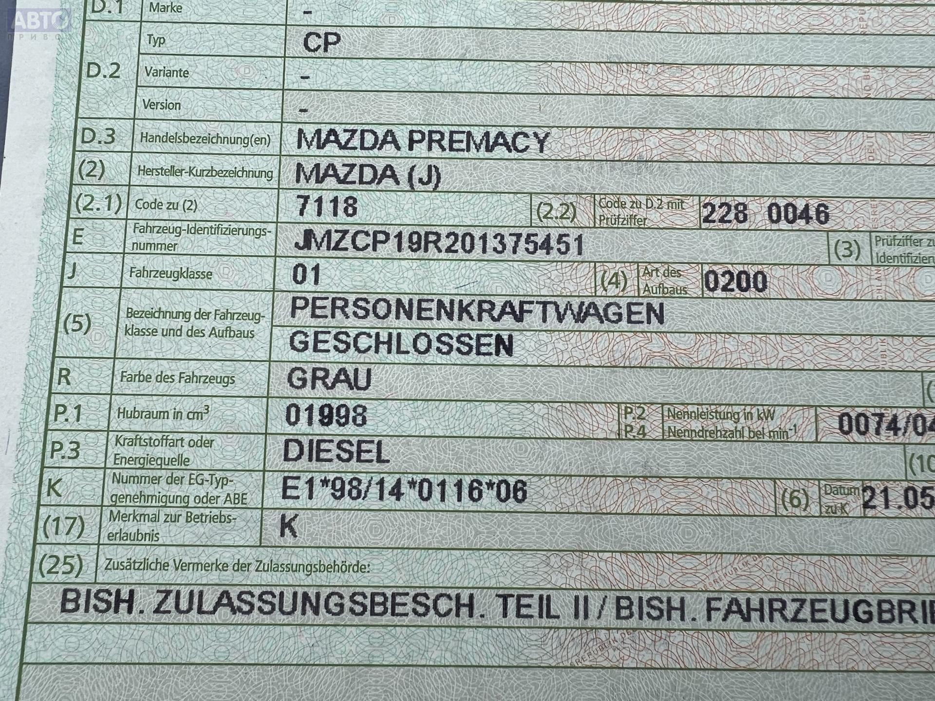 | Марка / Модель / Год: | Mazda Premacy 2004 |