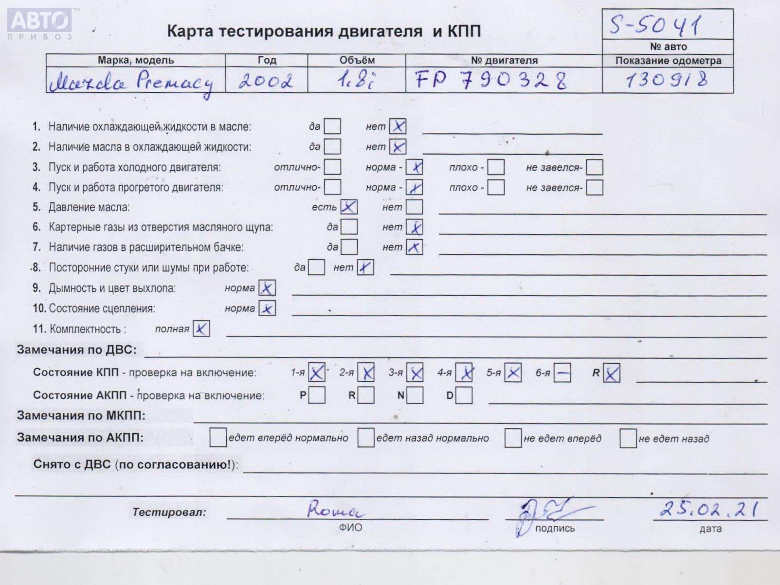| Марка / Модель / Год: | Mazda Premacy 2002 |