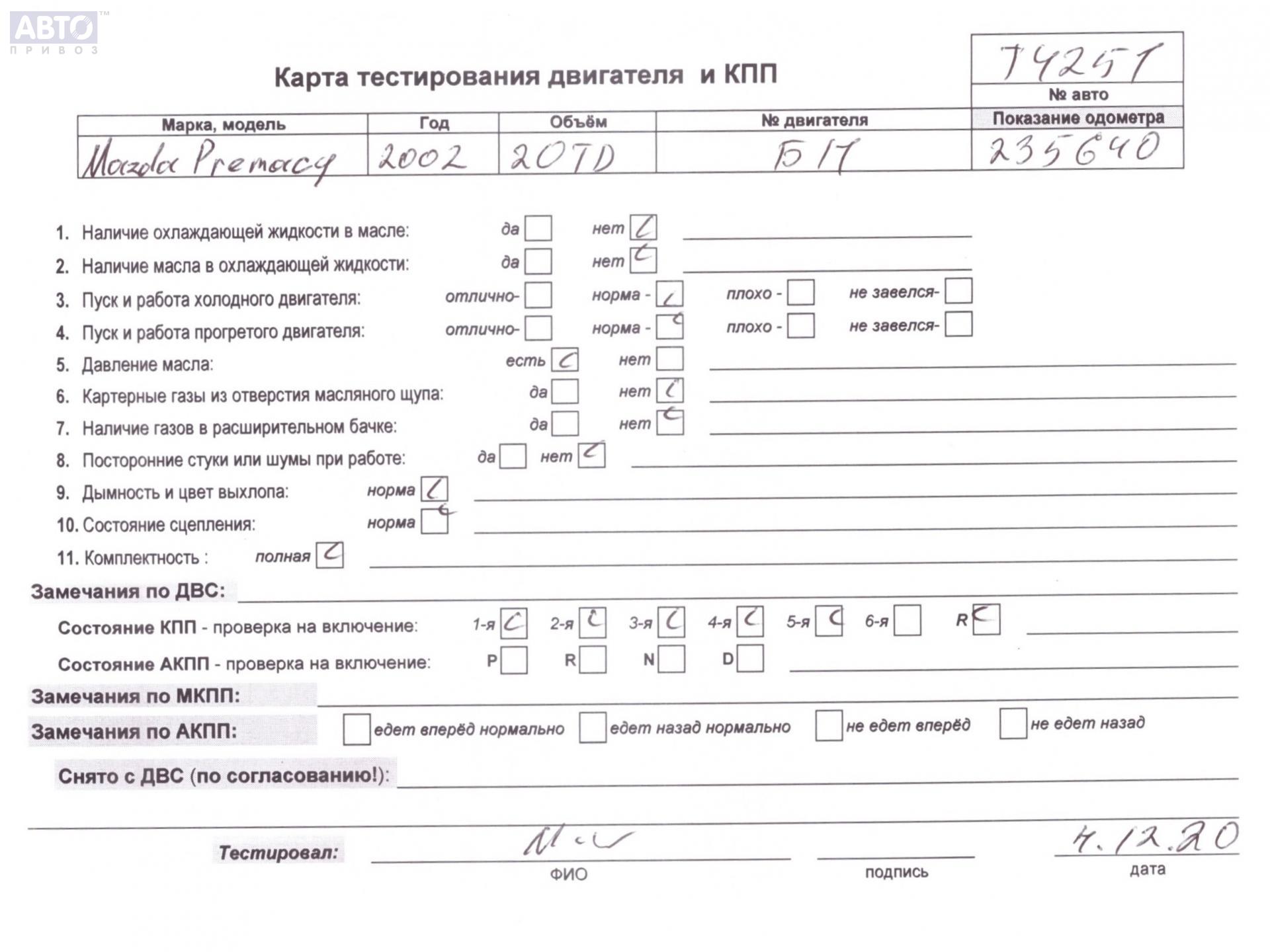 | Марка / Модель / Год: | Mazda Premacy 2002 |