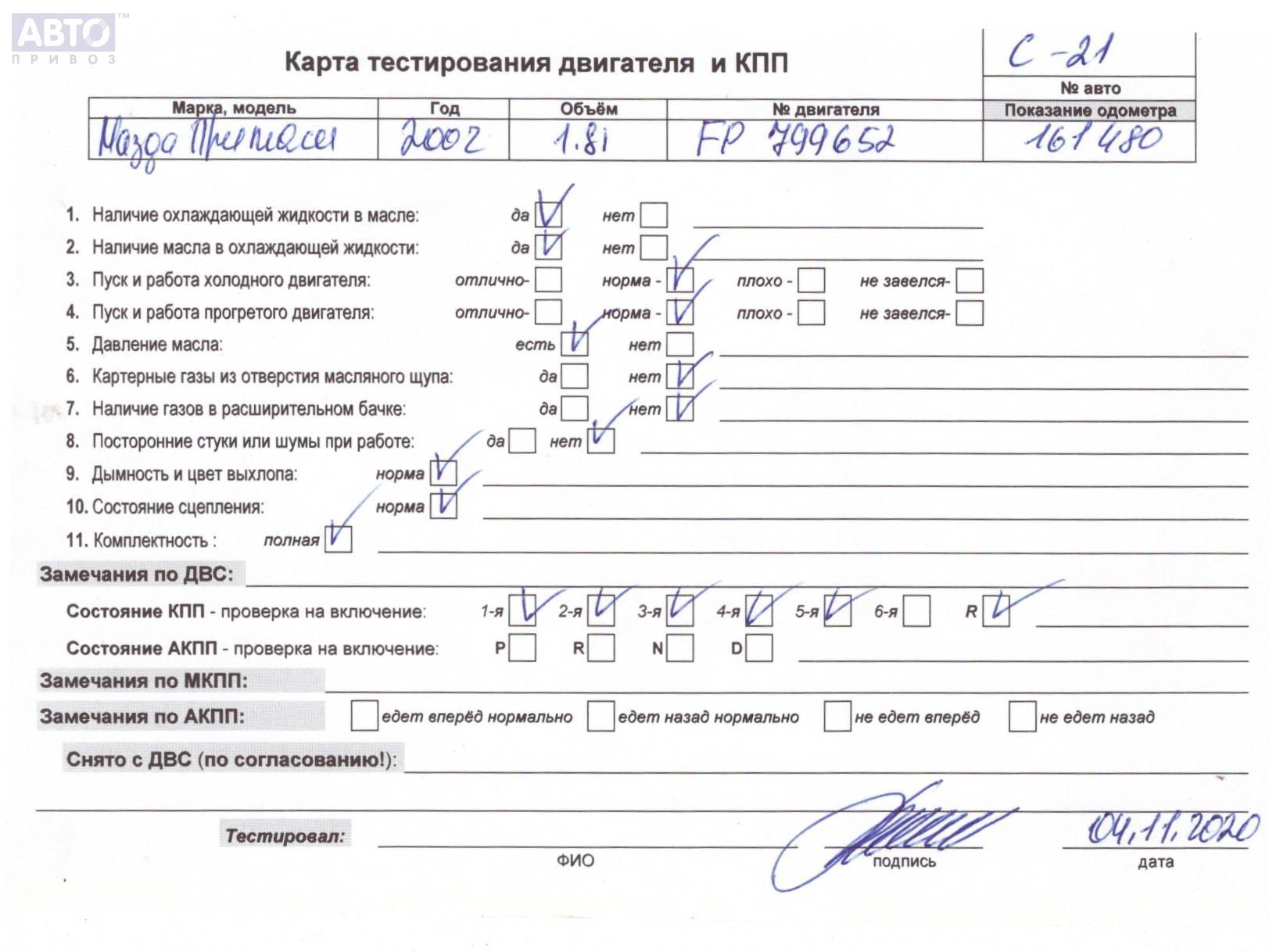 | Марка / Модель / Год: | Mazda Premacy 2002 |