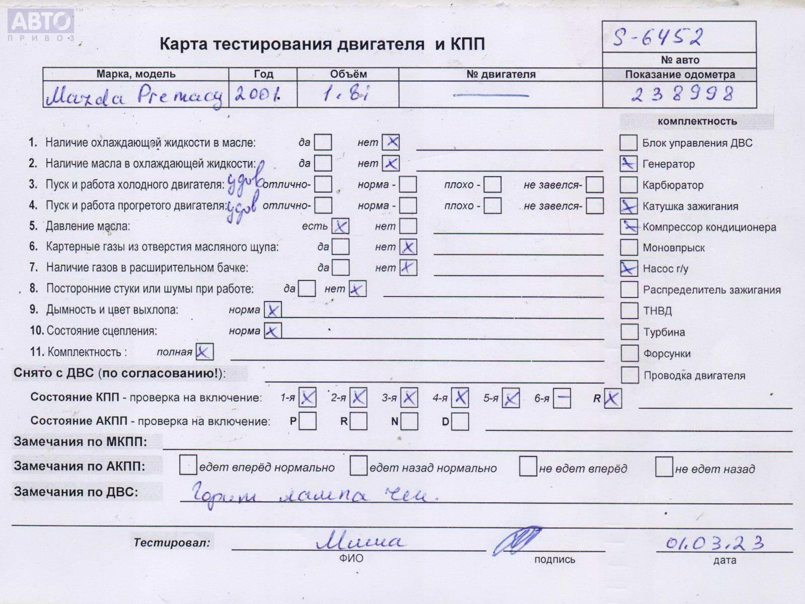| Марка / Модель / Год: | Mazda Premacy 2001 |