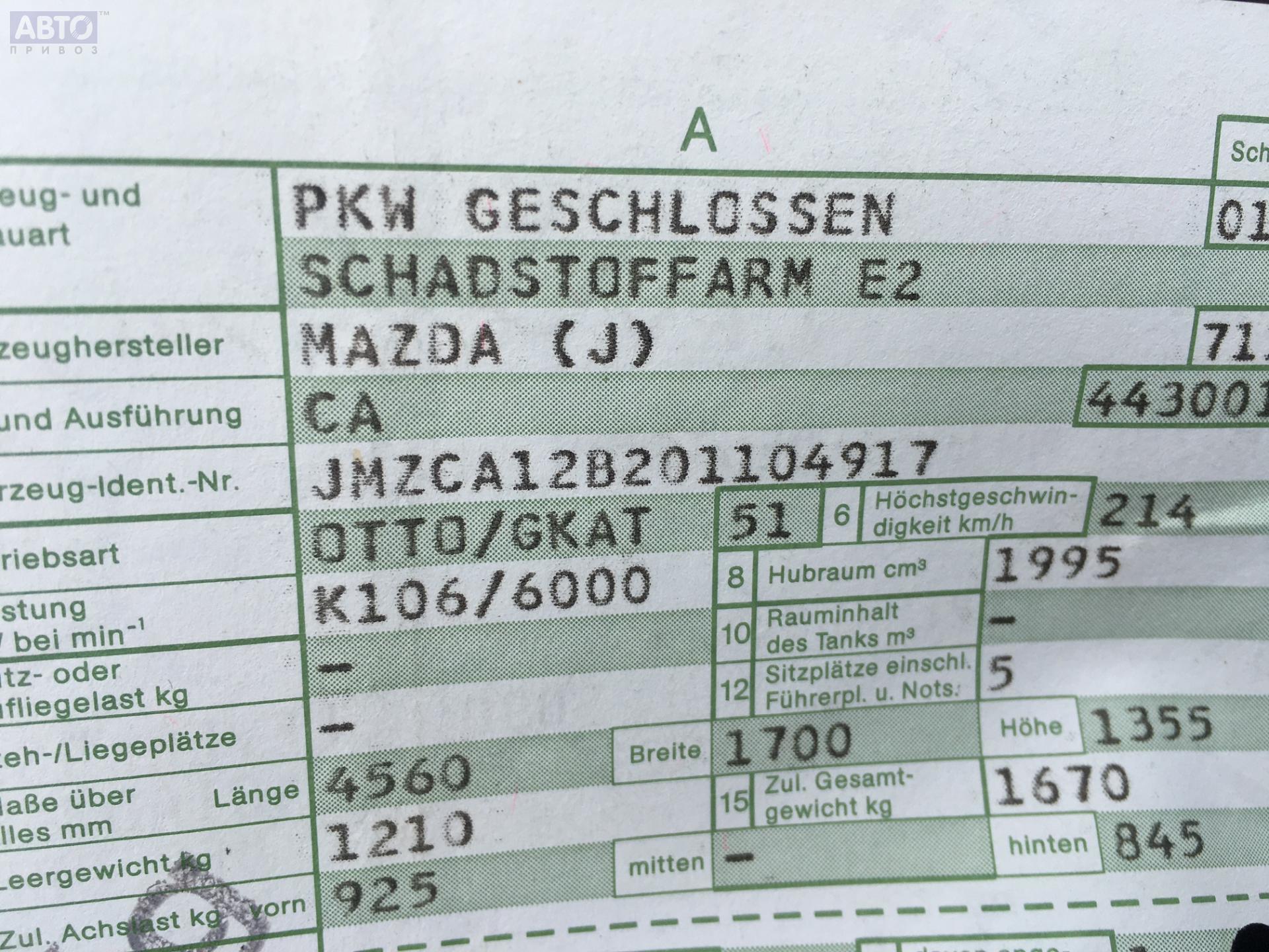 | Автомобиль / VIN: | S5384 JMZCA12B201104917 |