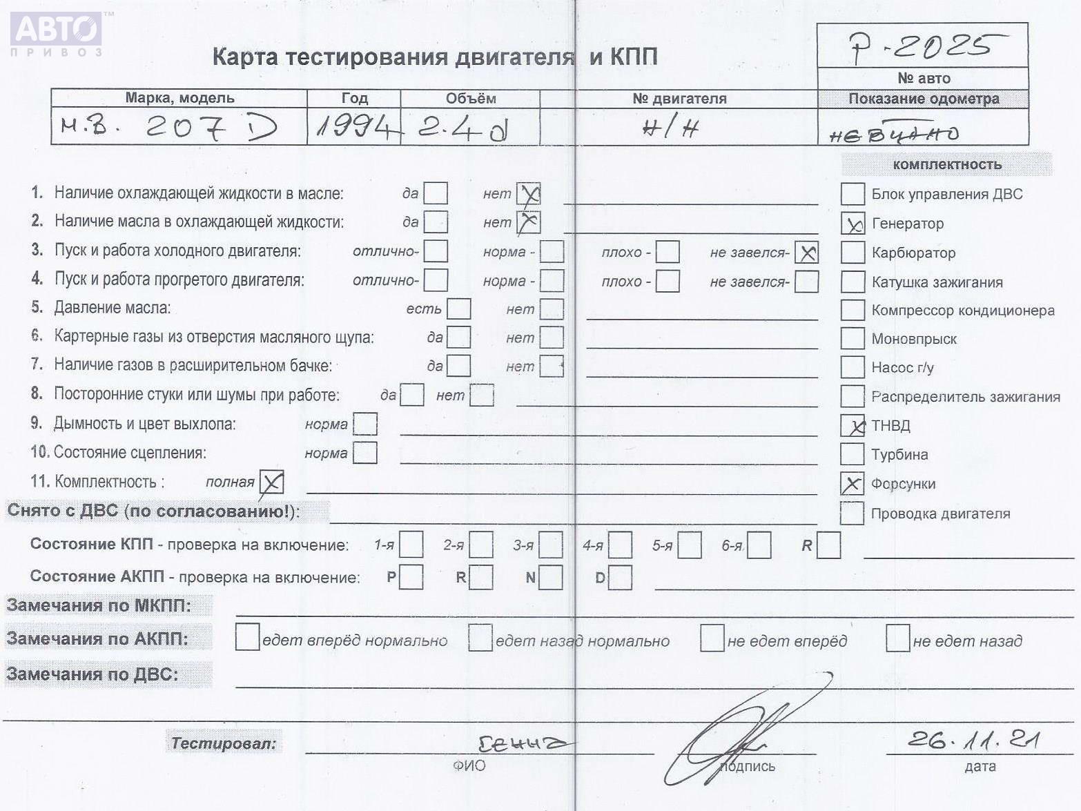 | Марка / Модель / Год: | Mercedes 207D/209D (307D/309D) 1994 |