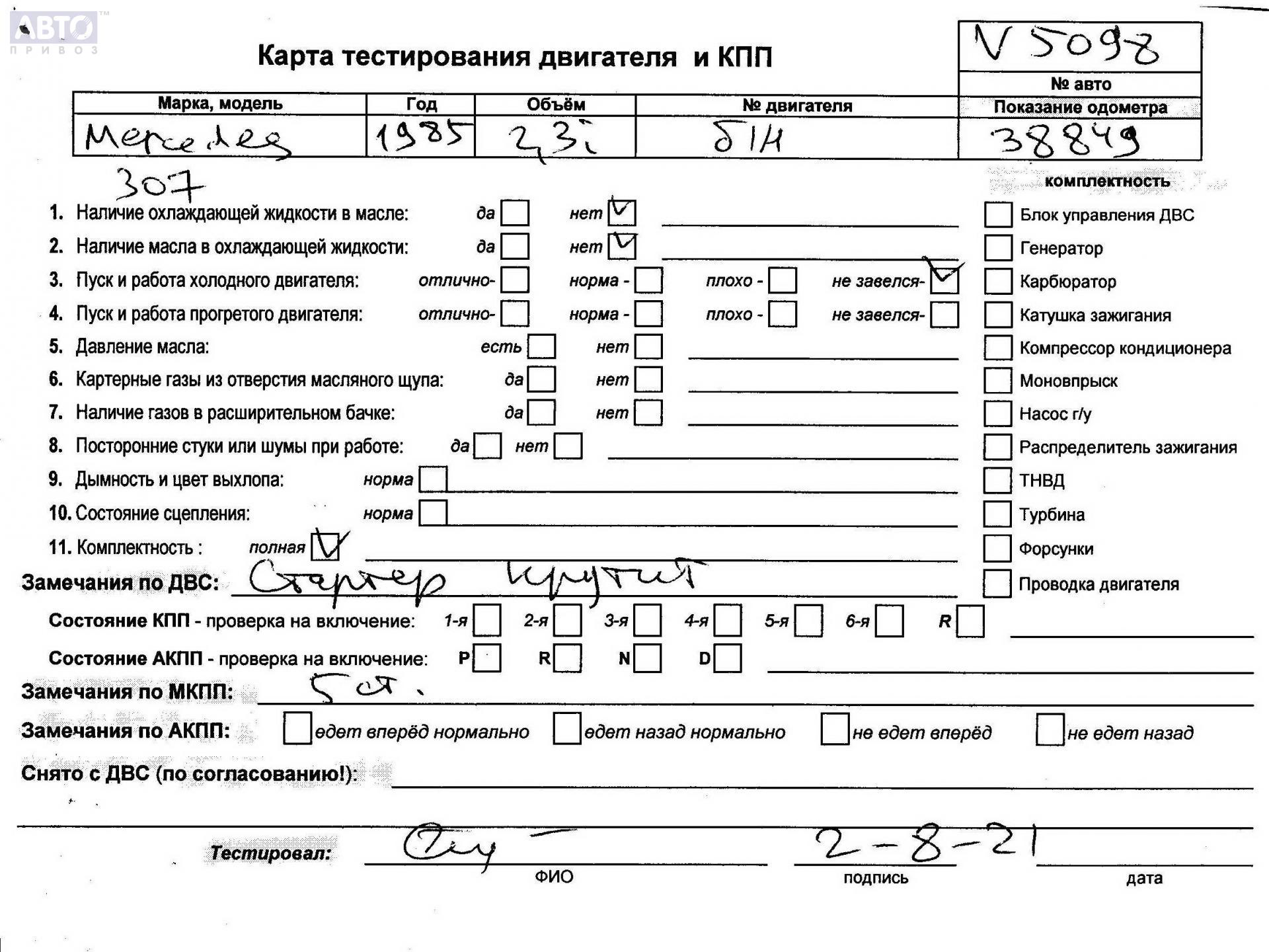 | Марка / Модель / Год: | Mercedes 208D/210D (308D/310D) 1985 |