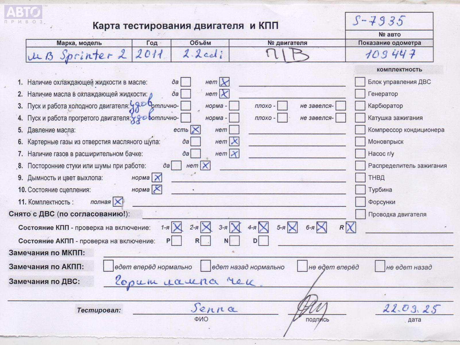 | Марка / Модель / Год: | Mercedes Sprinter W906 (2006-2018) 2011 |
