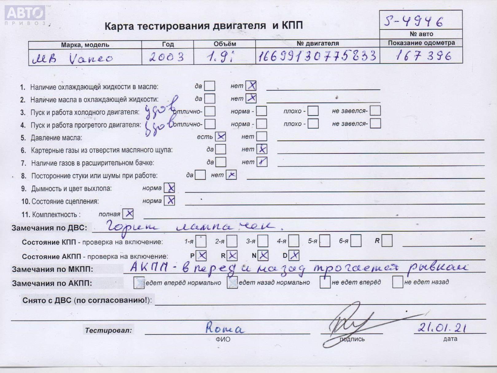 | Марка / Модель / Год: | Mercedes Vaneo W414 (2001-2006) 2004 |