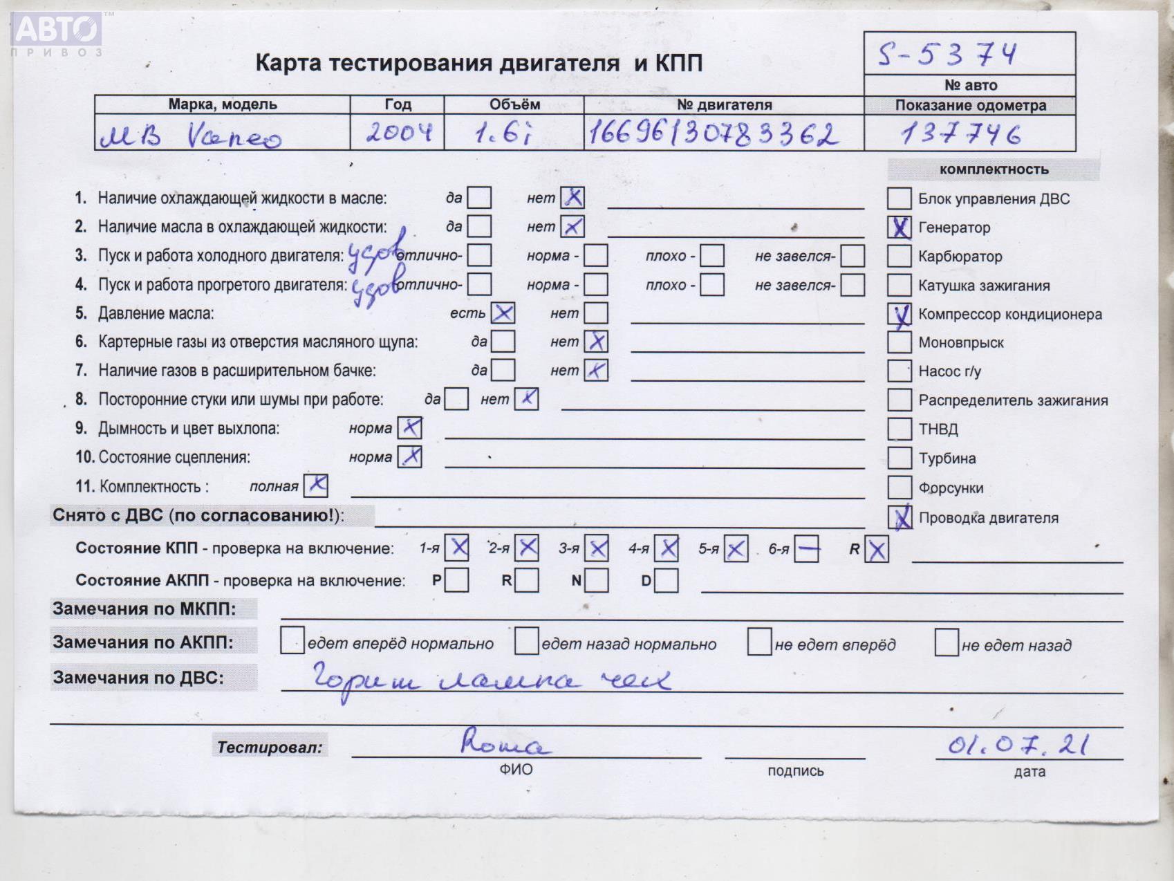 | Марка / Модель / Год: | Mercedes Vaneo W414 (2001-2006) 2004 |