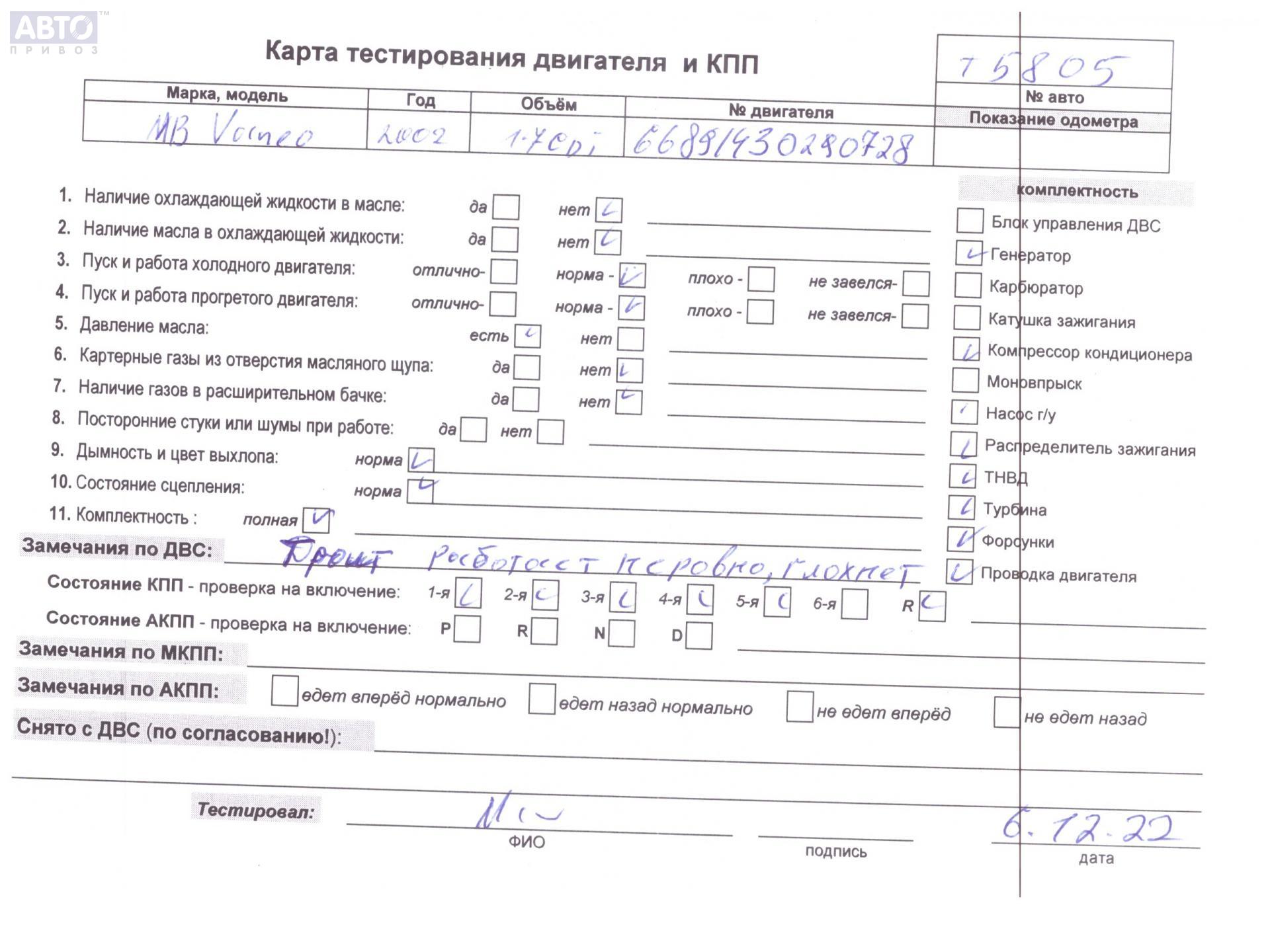 | Марка / Модель / Год: | Mercedes Vaneo W414 (2001-2006) 2002 |
