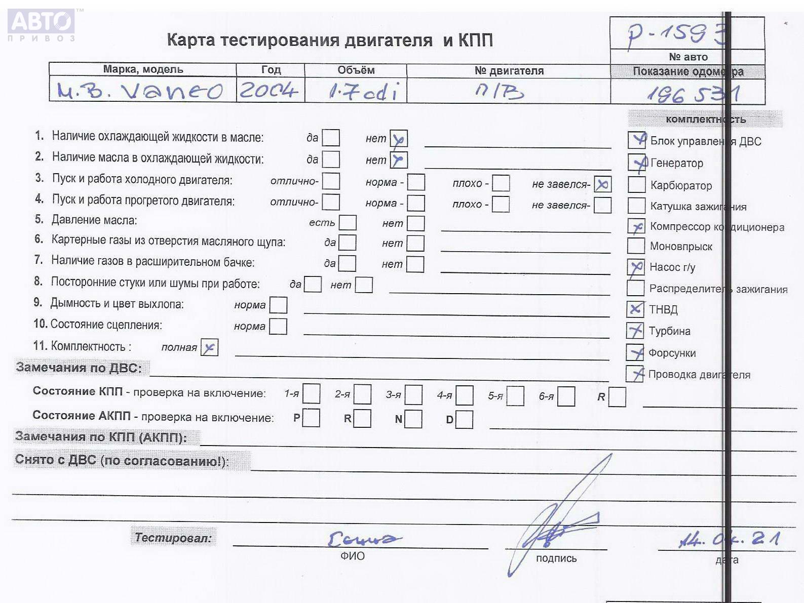 | Марка / Модель / Год: | Mercedes Vaneo W414 (2001-2006) 2004 |
