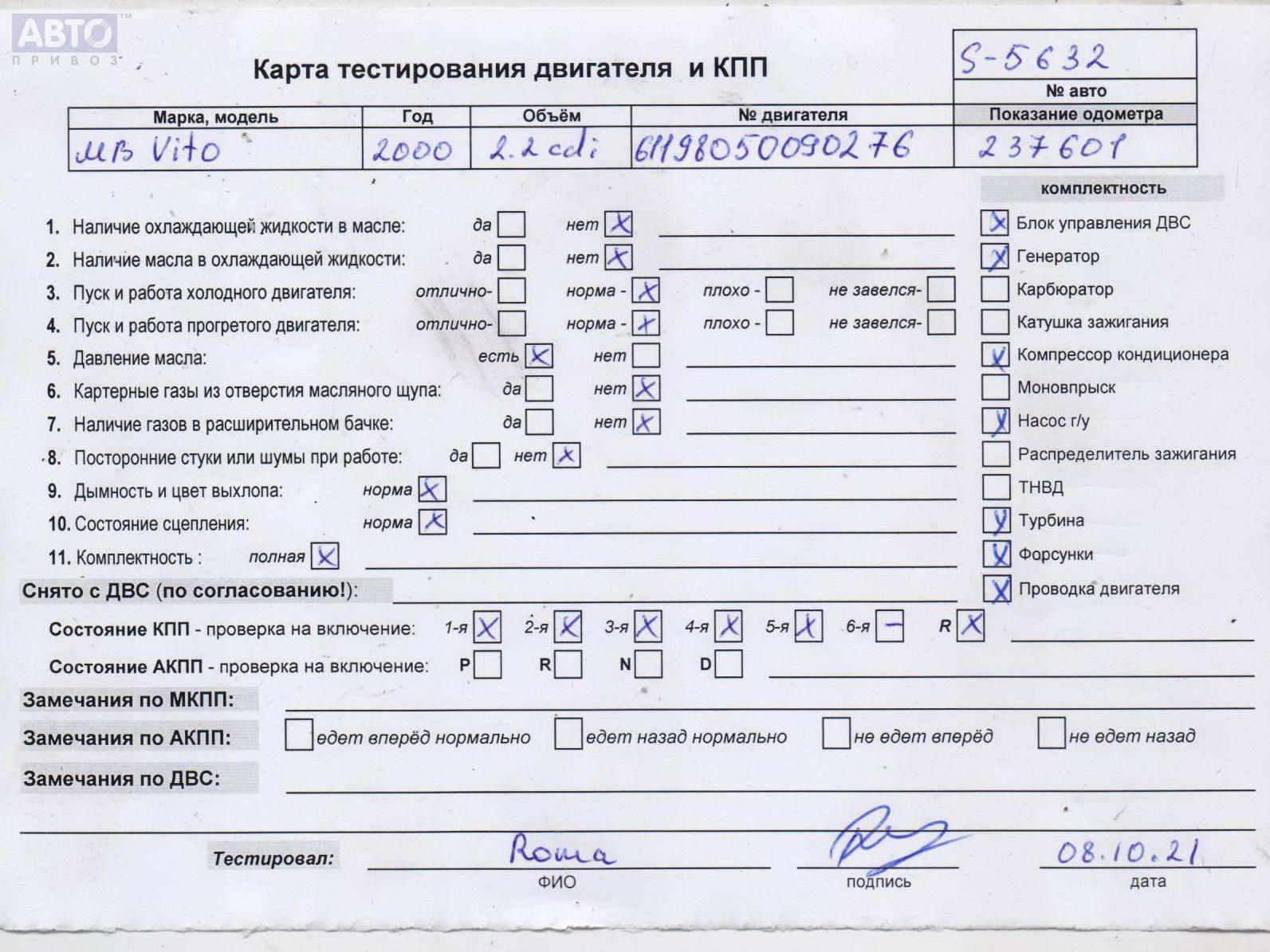 | Марка / Модель / Год: | Mercedes Vito-1 W638 (1996-2003) 2000 |