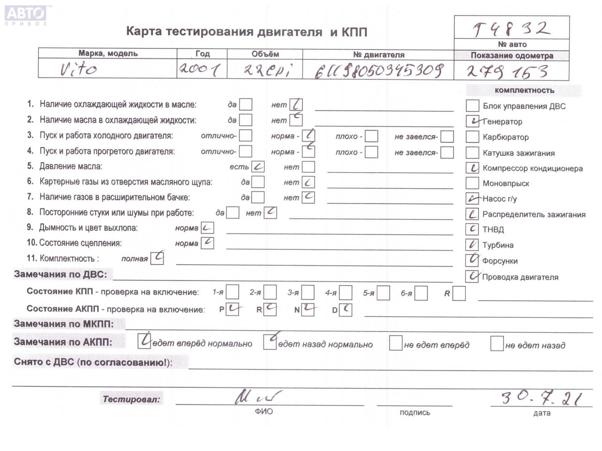 | Марка / Модель / Год: | Mercedes Vito-1 W638 (1996-2003) 2001 |