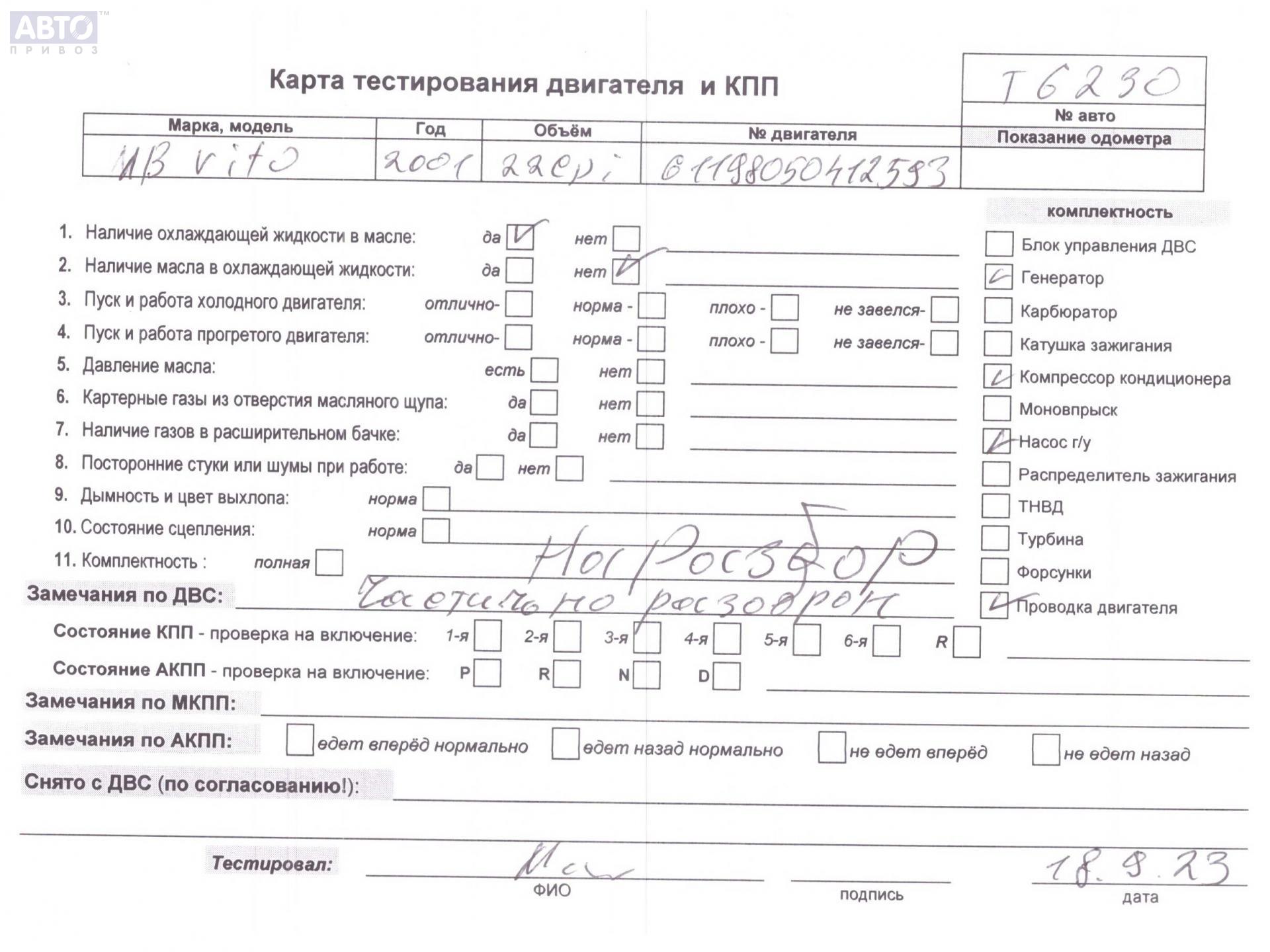 | Марка / Модель / Год: | Mercedes Vito-1 W638 (1996-2003) 2001 |