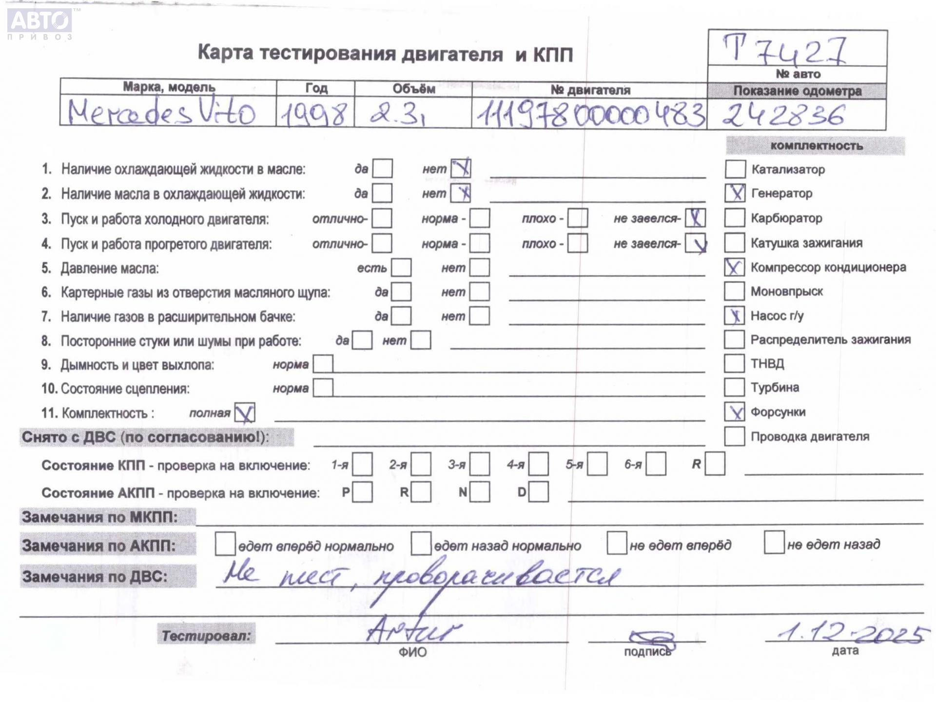 | Марка / Модель / Год: | Mercedes Vito-1 W638 (1996-2003) 1996 |