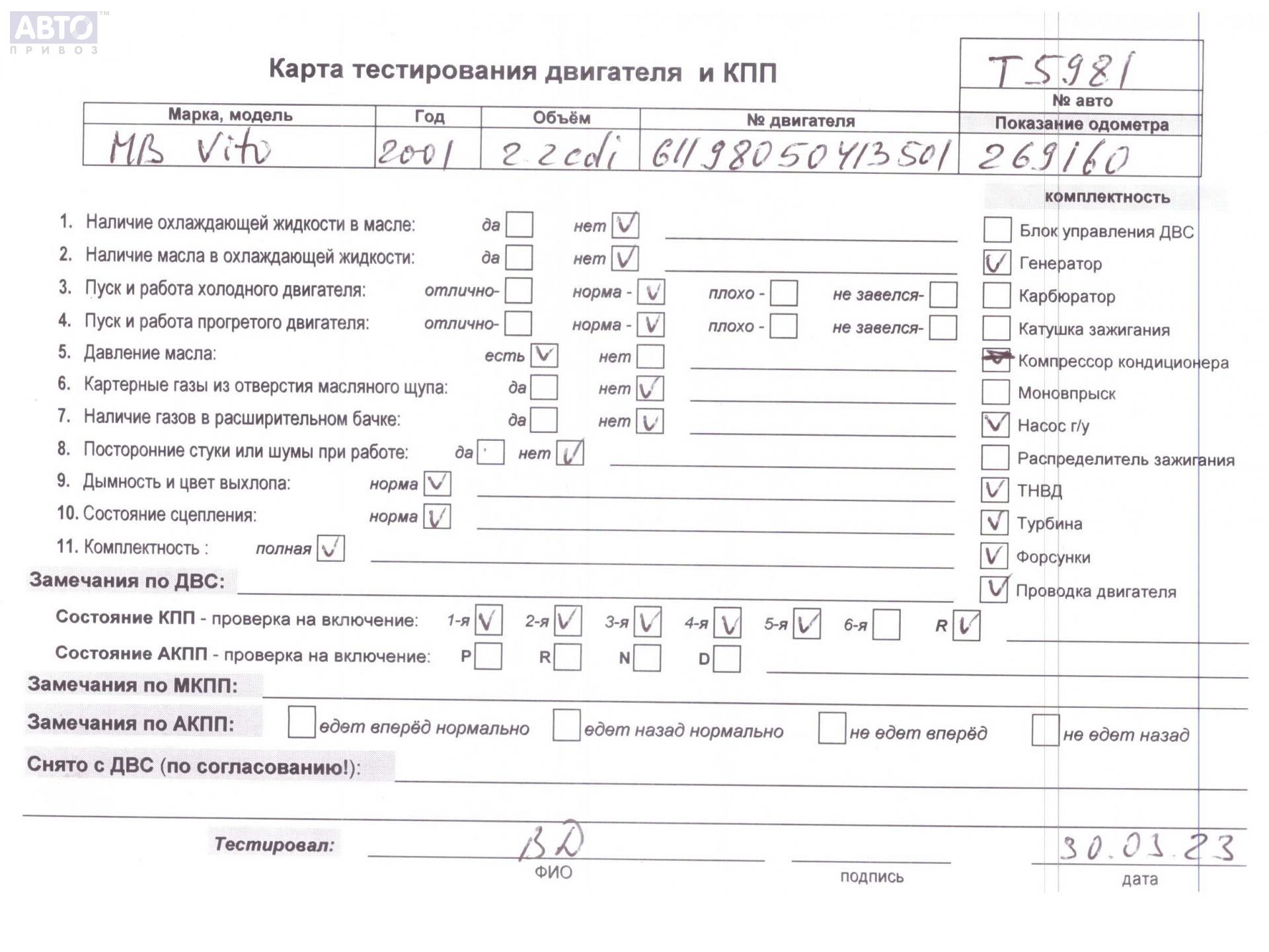 | Марка / Модель / Год: | Mercedes Vito-1 W638 (1996-2003) 2001 |