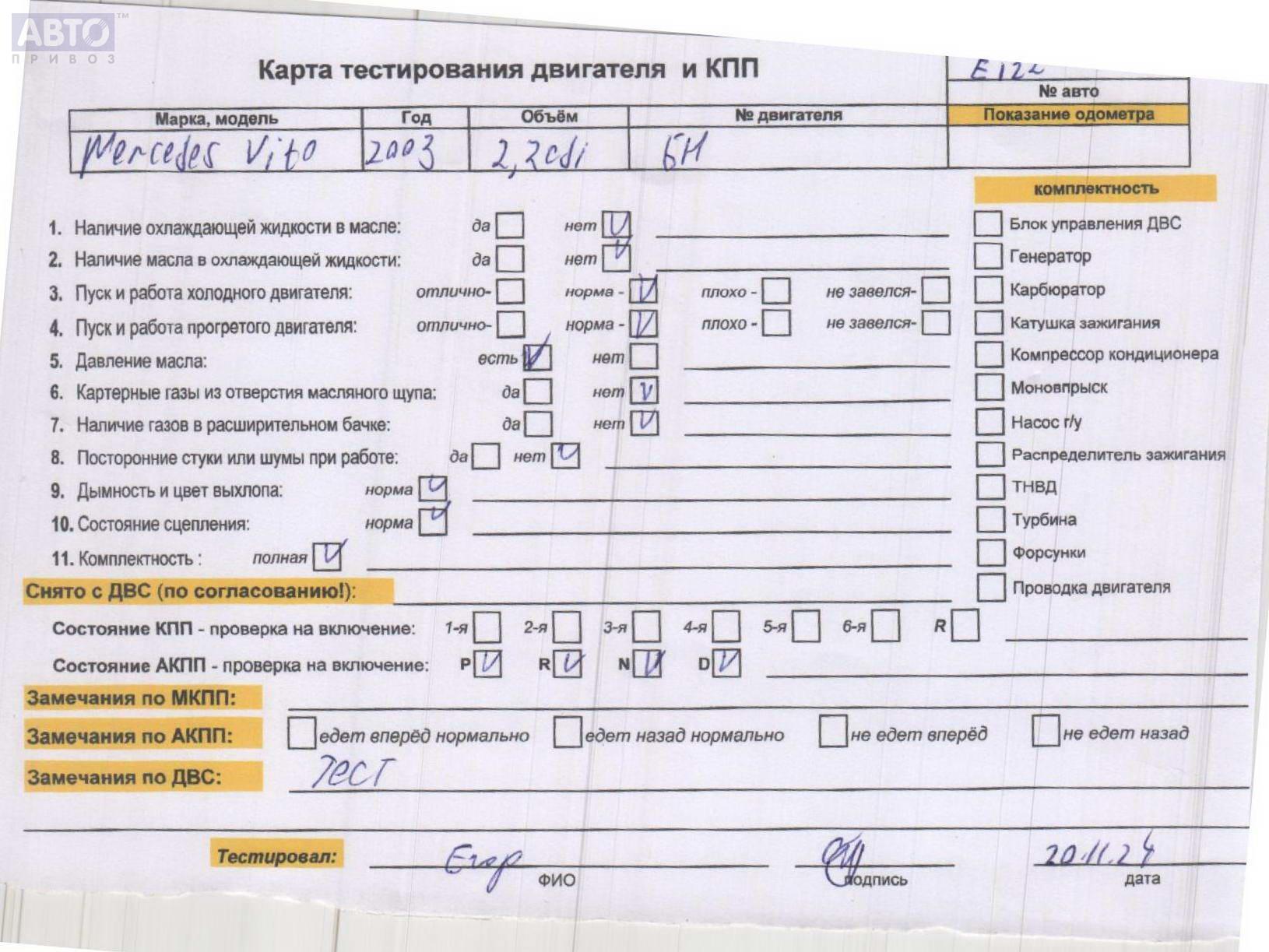| Марка / Модель / Год: | Mercedes Vito-1 W638 (1996-2003) 2003 |