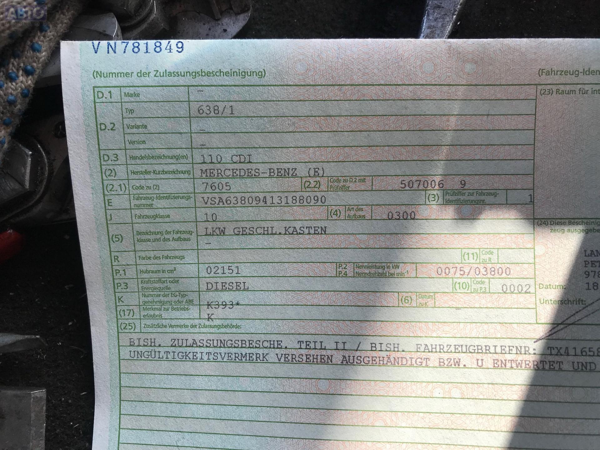 | Марка / Модель / Год: | Mercedes Vito-1 W638 (1996-2003) 1999 |