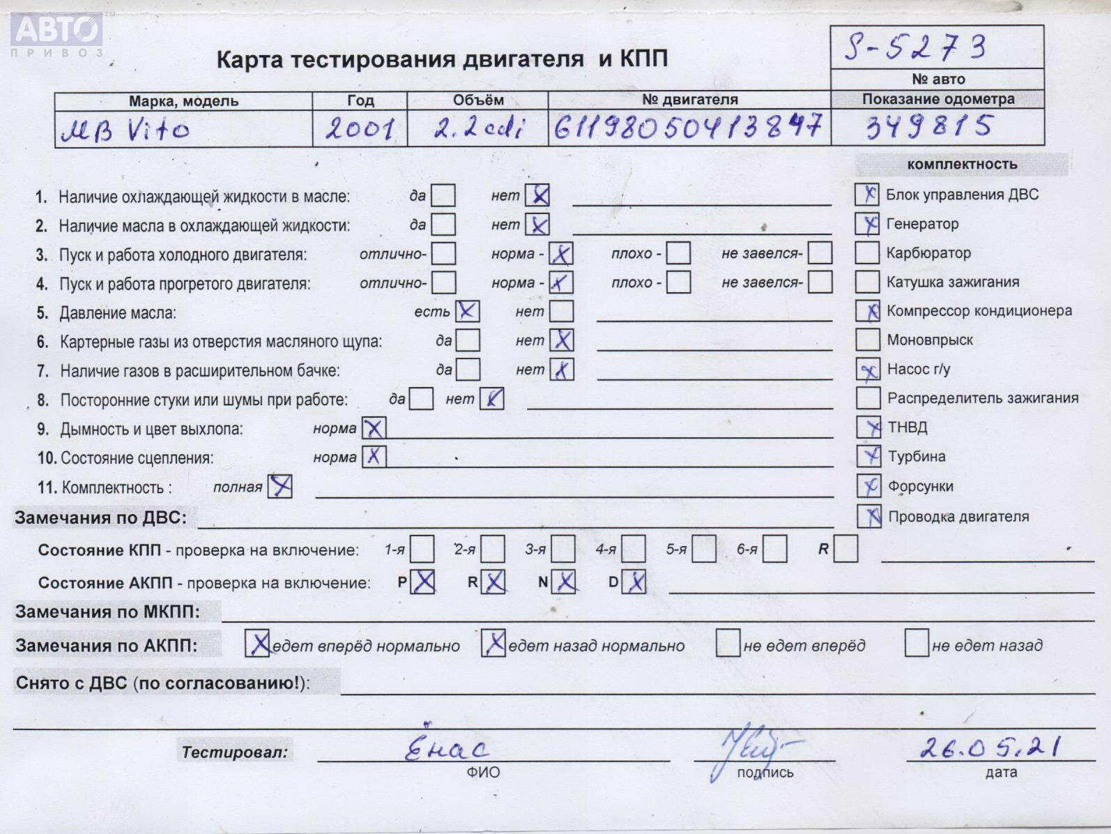 | Марка / Модель / Год: | Mercedes Vito-1 W638 (1996-2003) 2001 |