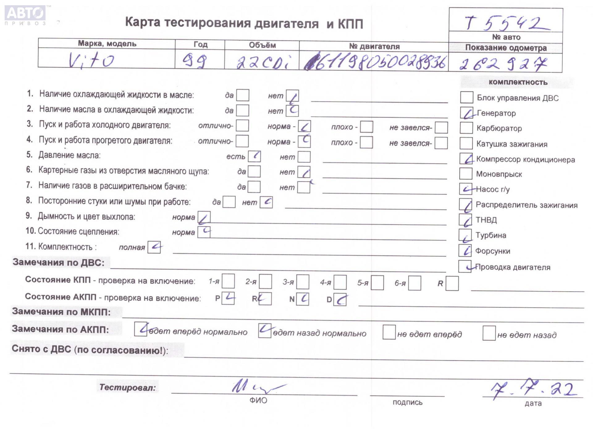 | Марка / Модель / Год: | Mercedes Vito-1 W638 (1996-2003) 1999 |