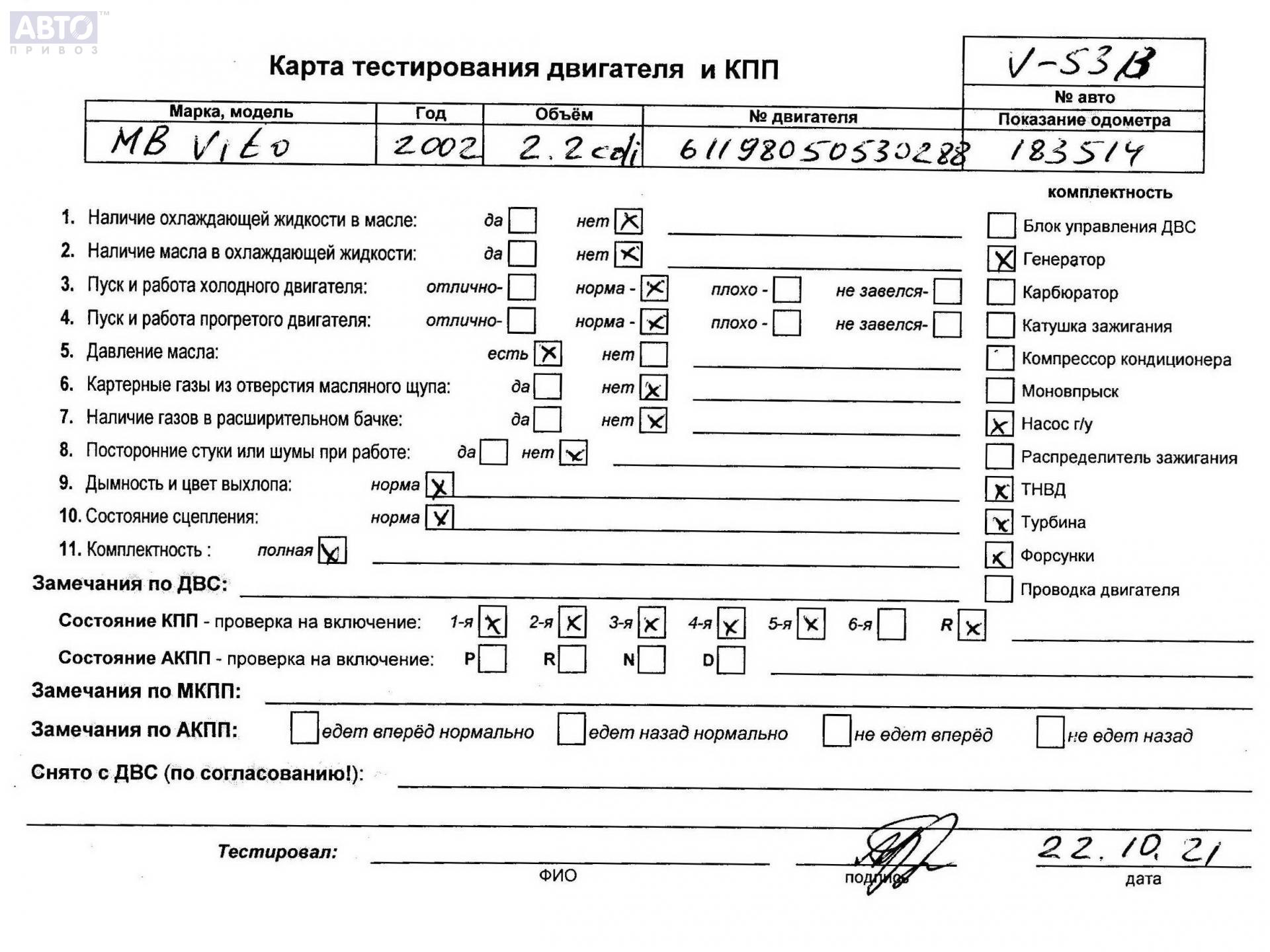 | Марка / Модель / Год: | Mercedes Vito-1 W638 (1996-2003) 2002 |