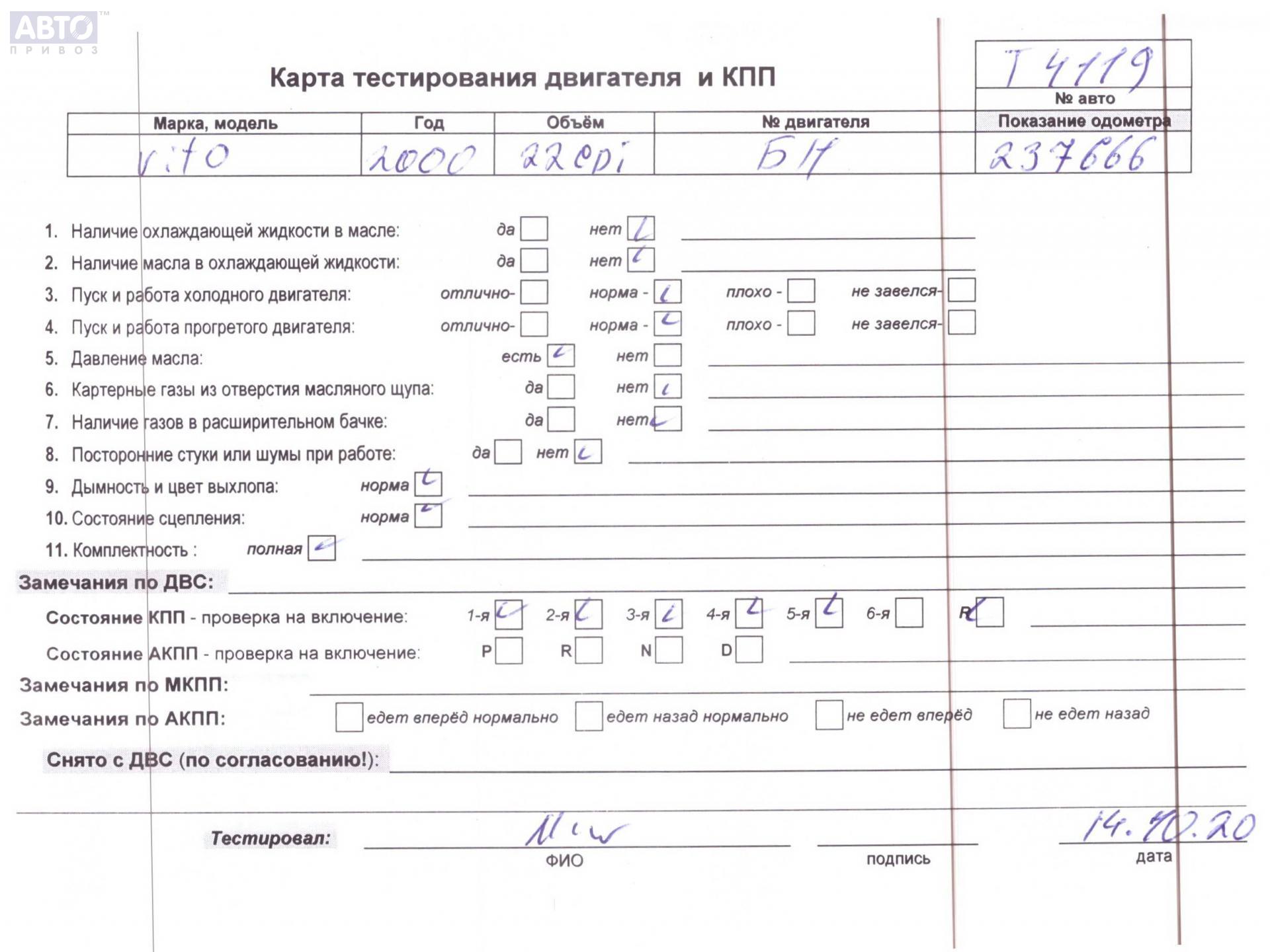 | Марка / Модель / Год: | Mercedes Vito-1 W638 (1996-2003) 2001 |