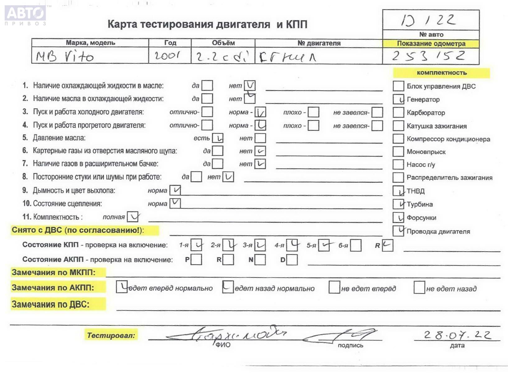 | Марка / Модель / Год: | Mercedes Vito-1 W638 (1996-2003) 2001 |