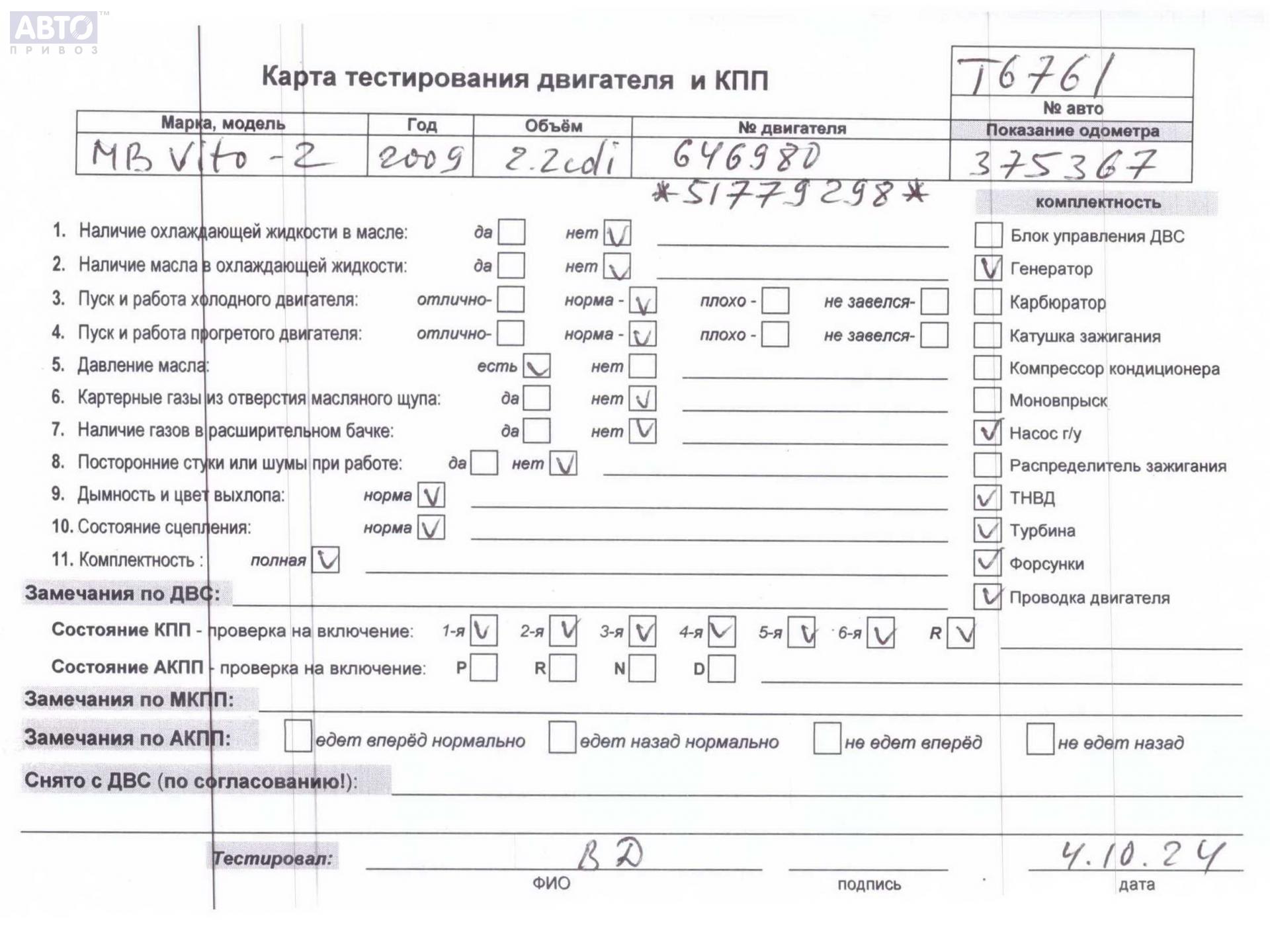 | Марка / Модель / Год: | Mercedes Vito-2 / Viano W639 (2003-2014) 2009 |