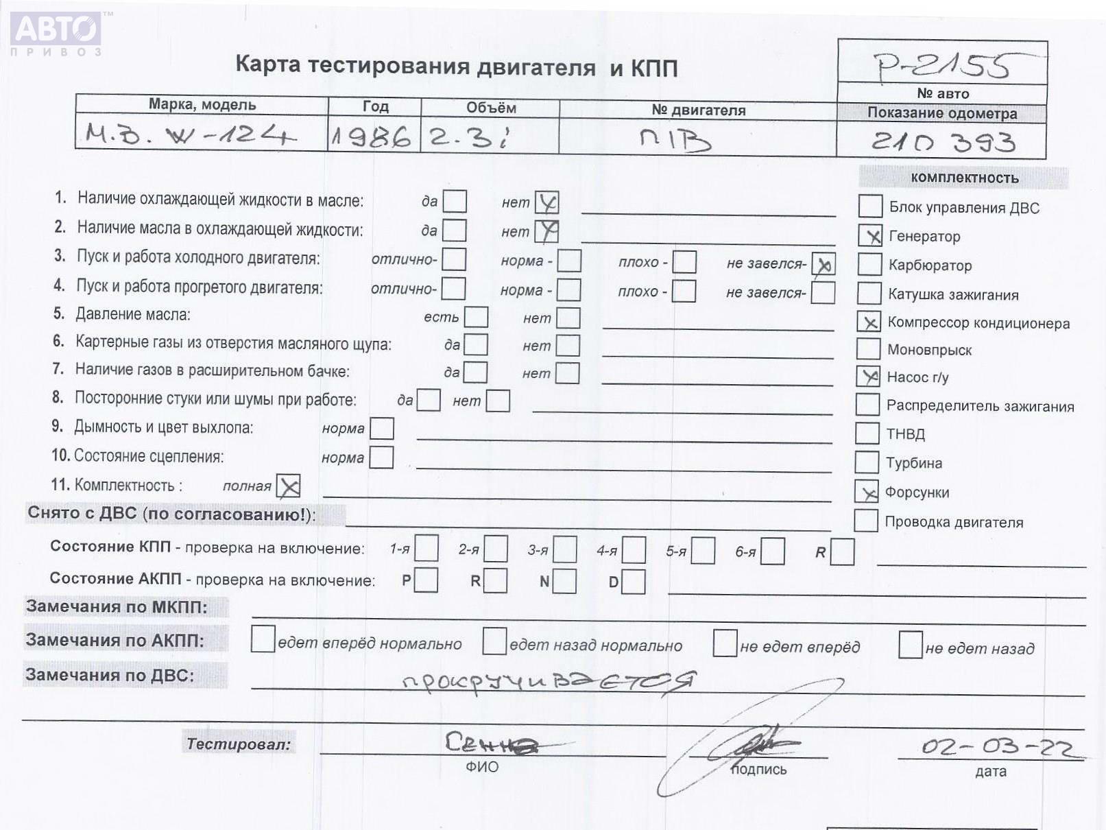 | Марка / Модель / Год: | Mercedes W124 (1985-1995) 1986 |
